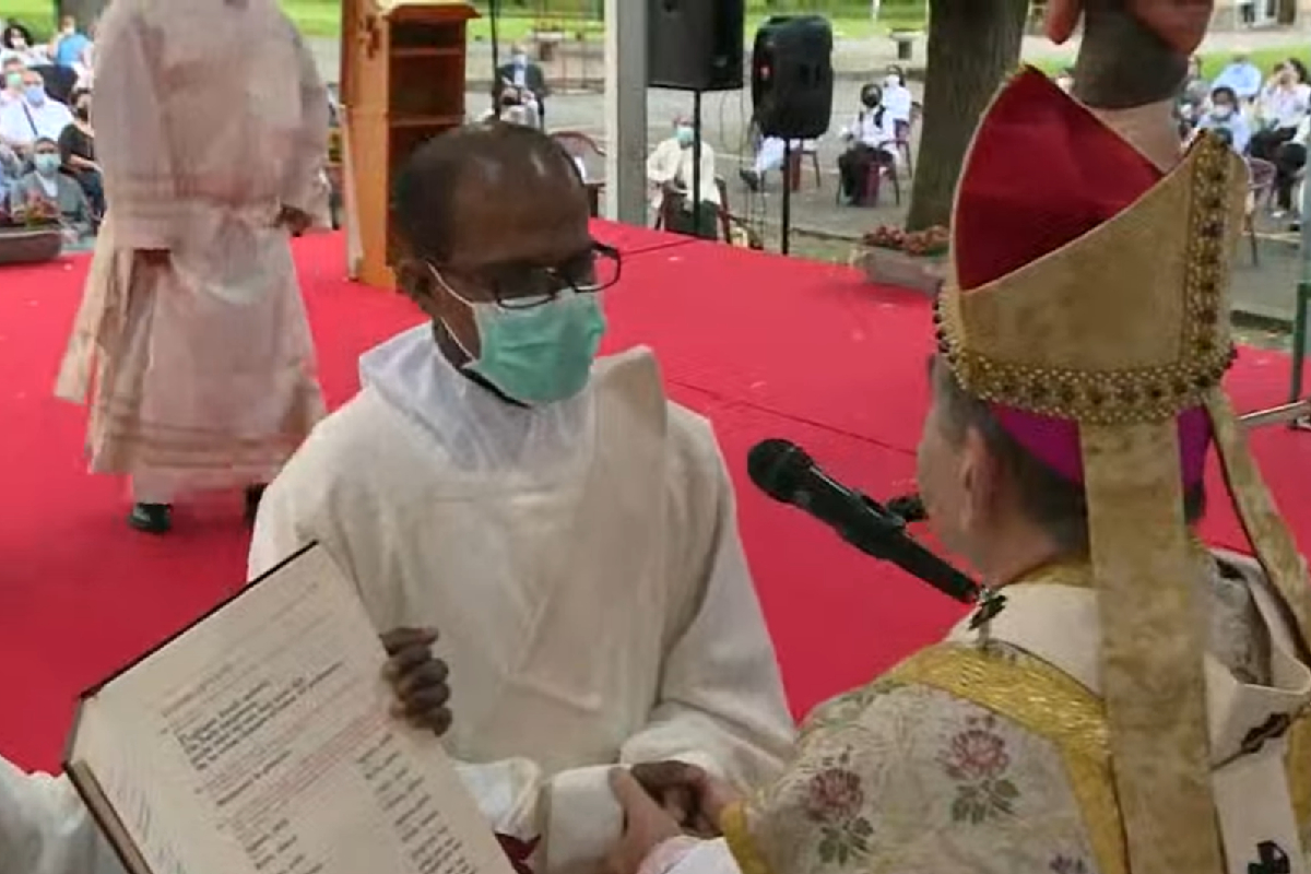 Mandati nel mondo per servire, parlando la lingua universale che tutti capiscono: l’amore. L’Arcivescovo, che presiede la Celebrazione per l’Ordinazione presbiterale di 5 nuovi sacerdoti missionari del Pontificio Istituto delle Missioni Estere, non è in Duomo – come tradizione -, ma pronuncia questo auspicio nello spazio all’aperto interno al Seminario teologico del Pime di Monza. In tempi di pandemia accade anche questo (i sacerdoti novelli 2020 della Diocesi saranno, invece, da lui ordinati, il prossimo 5 settembre in Cattedrale), ma il Rito è comunque partecipato dai 300 invitati che sono presenti – tanti i parenti dei Diaconi venuti anche da Paesi lontani – e dai molti che lo seguono attraverso i canali social del Pime. Nella breve processione iniziale, accanto al vescovo Mario vi sono il superiore generale dell’Istituto, padre Ferruccio Brambillasca, padre Luigi Bonalumi rettore del Seminario, il vicario generale di Bologna, monsignor Giovanni Silvani. Molti altri presbiteri e docenti del Pime concelebrano, così come parroci amici, il vicario episcopale della Zona pastorale V, monsignor Luciano Angaroni, l’arciprete del Duomo di Monza, monsignor Silvano Provasi, il responsabile dell’Ufficio missionario, don Maurizio Zago. Anche la data non è stata scelta a caso, infatti, il 15 giugno ricorre la festa liturgica del beato Clemente Vismara che, da Agrate Brianza, formato nei seminari di Milano, partì come missionario Pime, vivendo per quasi 70 anni nell’allora Birmania, l’attuale Myanmar. Storie di una lunga militanza missionaria in tempi di «epopea» e storie di vite in missione che iniziano in un tempo molto diverso, come quello attuale dei 5 candidati 2020, tra cui 2 italiani, Ivan Straface e Mauro Pazzi (Diocesi di Bologna), Sravan Kumar Koya dall’India, Fel Catan dalle Filippine e Nathi Lobi dalla Thailandia.