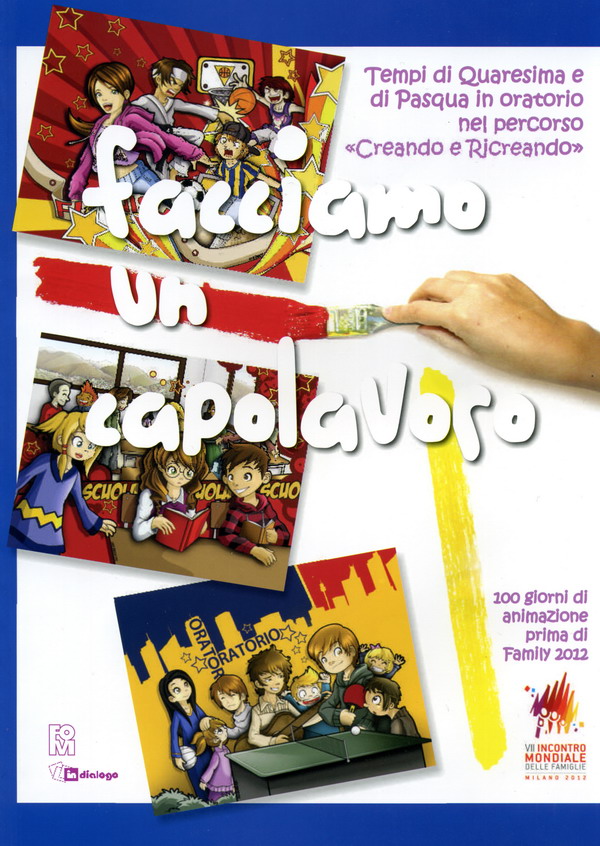 A cura della Fondazione Oratori Milanesi è Facciamo un capolavoro. 100 giorni di animazione prima di Family 2012 (In Dialogo, pag. 56, euro 7.50). Quelli che separano l’inizio del tempo di Quaresima dal momento culminante del VII Incontro mondiale delle famiglie con il Santo Padre a Milano saranno 100 giorni di animazione permanente in oratorio. Sullo sfondo delle proposte per l’animazione per la Quaresima e la Pasqua – nello stile della preghiera, del racconto, del gioco e della creatività – troviamo il tema delle ultime cinque catechesi preparatorie verso Milano 2012 che, a conclusione del percorso oratoriano “Creando e Ricreando”, sono tradotte in attività da svolgersi in oratorio.