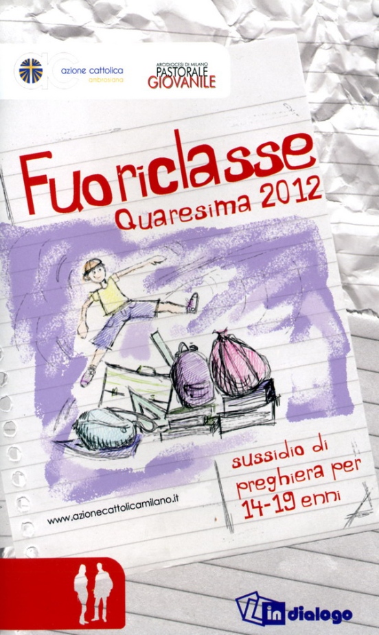Fuoriclasse. Sussidio di preghiera per 14-19enni (In Dialogo, pag. 64, euro 3,50) è un testo di riflessione e preghiera per tutti i ragazzi dai 14 ai 19 anni, studenti e lavoratori, proposto dall’Azione Cattolica ambrosiana e dalla Pastorale Giovanile. Può essere utilizzato personalmente oppure nell’ambiente in cui si vive, con i compagni di classe o i colleghi di lavoro. È possibile utilizzarlo per riflettere con gli amici durante il tempo di Quaresima nel desiderio di rileggere la vita a partire dal Vangelo. Ogni anno la Chiesa ripropone di mettersi in cammino verso la Pasqua di Gesù e lo fa riconsegnando ai fedeli una Parola che desidera dare luce alla vita di ciascuno, indicando anche dei concreti passi di conversione. Nel libretto i giovani saranno condotti dai Vangeli domenicali e dalla lettura della Passione secondo Luca.