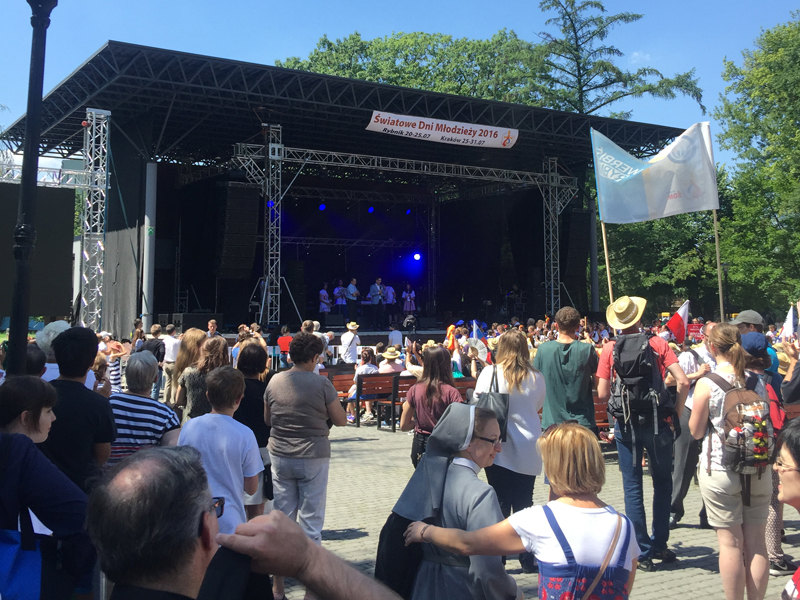 Con l’augurio di vivere una Giornata della gioventù piena di esperienze capaci di farci crescere e di relazioni edificanti abbiamo lasciato la Basilica e ci siamo recati nel Campus dell’università di Rybnik, dove un grande palco ha fatto da sfondo a una magnifica festa! Canti, balli, la presentazione dei vari gruppi internazionali e l’aria di una vera e propria festa di accoglienza. Siamo a Rybnik, ma allo stesso tempo siamo un po’ a casa. Qualcosa, non a caso con la Q maiuscola, ci unisce, rispondiamo a una chiamata.