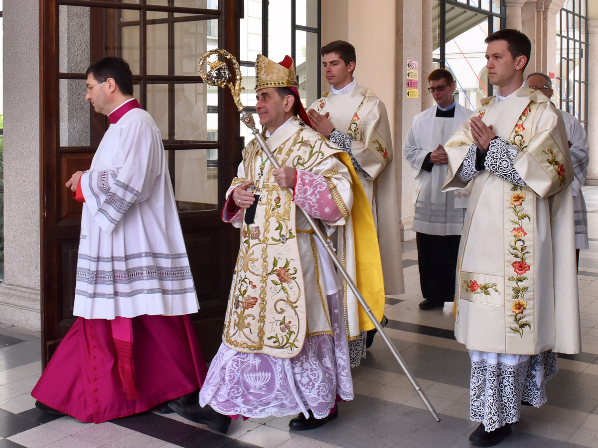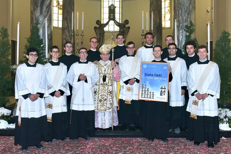 Poi, al termine della Messa – nella quale l’Arcivescovo esprime ancora gratitudine e ammirazione «per questa giornata che ci fa sentire un presbiterio raccolto in fraternità» -, la festa è tutta per chi ricorda il 25°, il 50°, 60°, il 70° e il 75esimo di Ordinazione presbiterale (di questa “classe” ben due i sacerdoti quasi centenari presenti, monsignor Giorgio Colombo e don Gianpiero Gabardi) o la ricorrenza dell’episcopato. Ma, soprattutto, la gioia condivisa è per i 15 giovani che diventeranno preti il prossimo 8 giugno. Il motto dei Candidati 2019, “Siate lieti nella speranza”, si fa immagine viva nella loro presentazione ufficiale, applauditissima dall’Arcivescovo e da tutti coloro che affollano il Quadriportico.
