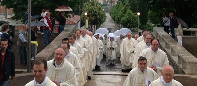Questo il dono da implorare nella preghiera dal santo papa Giovanni, la cui reliquia esposta alla canonizzazione verrà conservata nella Cattedrale di Bergamo, come spiega il parroco di Sotto il Monte, monsignor Claudio Dolcini. Preceduta appunto dal reliquiario, al termine della Messa, si snoda la breve processione dalla parrocchia verso il Giardino della Pace dove, di fronte alla statua di papa Roncalli viene recitata la supplica a San Giovanni XXIIII.