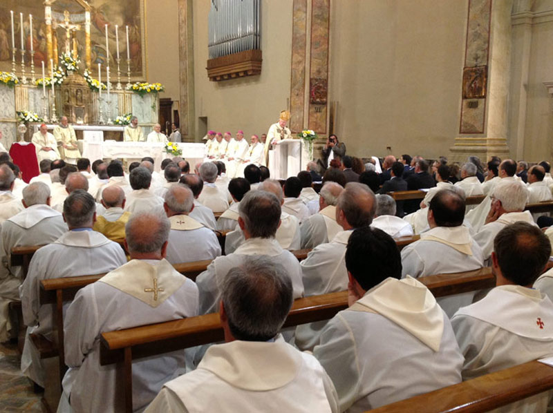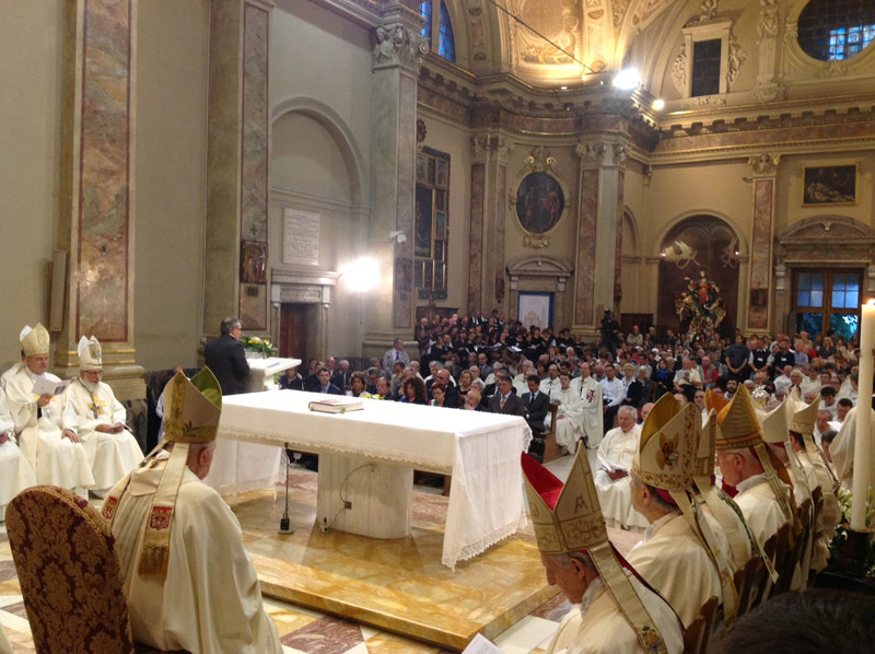 Un Pastore che si fece padre, «capace di amore generativo», portatore della «carica espressiva dell’amore oggettivo ed effettivo per i suoi fedeli» e che oggi segna la strada per i Vescovi lombardi, come sottolinea ancora il Cardinale: «Noi riconosciamo questa sera, davanti a voi fedeli carissimi, nella figura e nell’intercessione di San Giovanni XXIII una strada sicura per meglio comprendere e assumere il compito pastorale che la Chiesa ci ha affidato. E vogliamo impegnarci davanti a voi tutti in questo senso». È qui, nel Signore che «tutti ci precede con il suo amore», nella «rigenerazione del Popolo di Dio», il primo e fondamentale scopo dei ministeri ordinati in tutte le vocazioni e gli stati di vita che lo Spirito suscita, «affinché la Chiesa possa adempiere nell’oggi la sua missione». Un compito che coinvolge, con la sua profondità, l’intera comunità cristiana, dal cui volto deve trasparire un cristianesimo capace di passare «dalla convenzione alla convinzione», come disse una volta al cardinale Scola il vescovo di Bergamo Amadei.