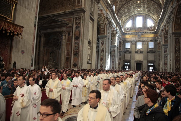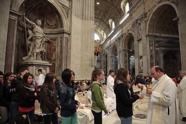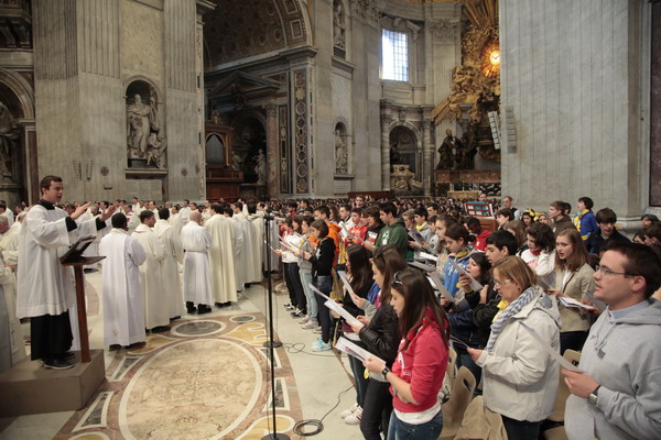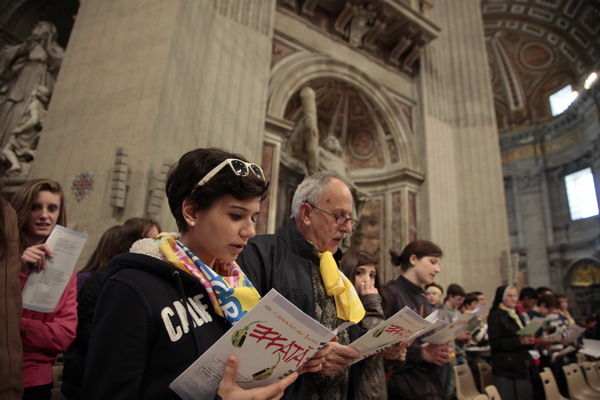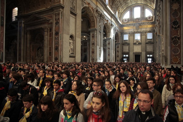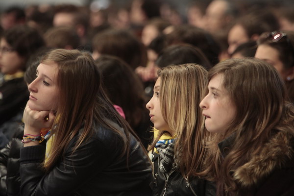 È la gioia il motivo dominante di questo pellegrinaggio dal sapore tutto speciale. Gioia che emana dal volto e dai gesti dei seimila 14enni ambrosiani partecipanti al tradizionale appuntamento in preparazione alla Professione di fede. Un gruppo festante e multicolore, dall’energia incontenibile, chiamato a essere “inviato speciale” di Family 2012, il VII Incontro mondiale delle famiglie in programma a Milano tra la fine di maggio e l’inizio di giugno. La gioia di sapere che tra poco si stringeranno attorno a Papa Benedetto XVI e vivranno una tappa fondamentale della storia della loro Chiesa.