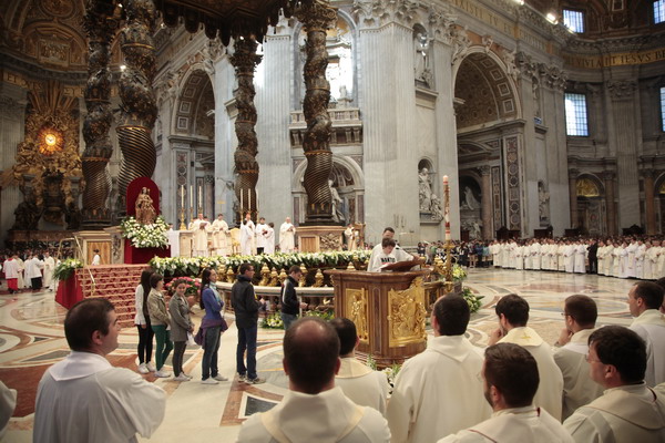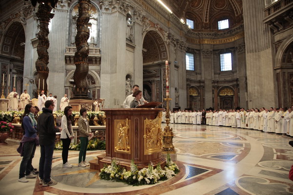 Comastri ha rilevato come la veglia pasquale inizi al buio per ricordare il male che c’è nel mondo. In particolare, l’arciprete della Basilica vaticana ha enumerato i tanti luoghi – dalla Siria al Sudan, dal Mali alla Terra Santa – sconvolti dalla guerra: «Pensate a quanto sangue, in questo momento, viene ancora versato. Questo cos’è? È il buio! Pensate ancora a quanta violenza è diffusa nelle nostre strade, nelle nostre piazze, nelle nostre case. Questo è il buio! Pensate a quanti giovani bruciano la vita, la giovinezza, la stagione più bella della vita. In mezzo a questo buio, c’è la luce di Cristo, che propone un’altra vita e ci dà la forza per condurre un’altra vita!».