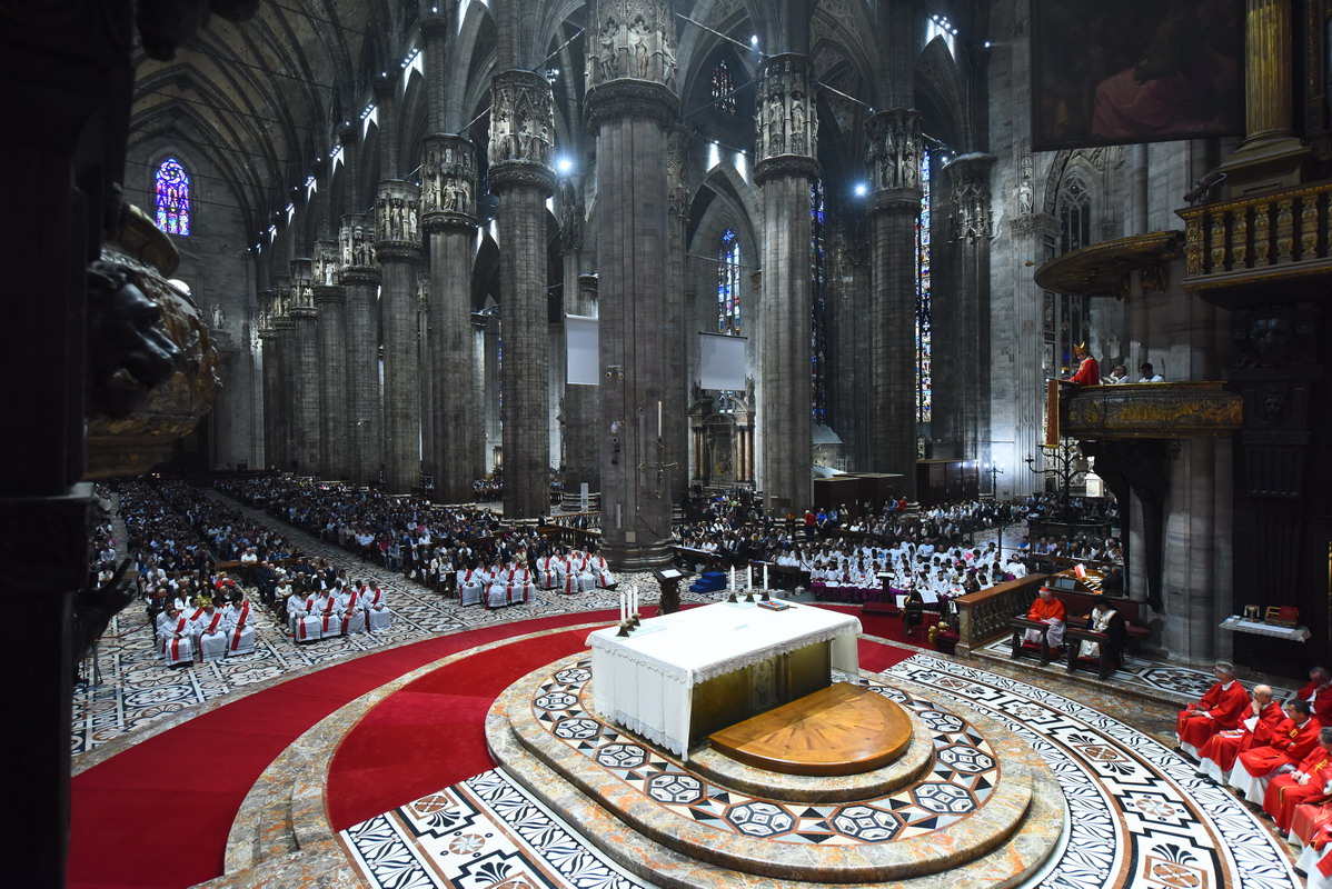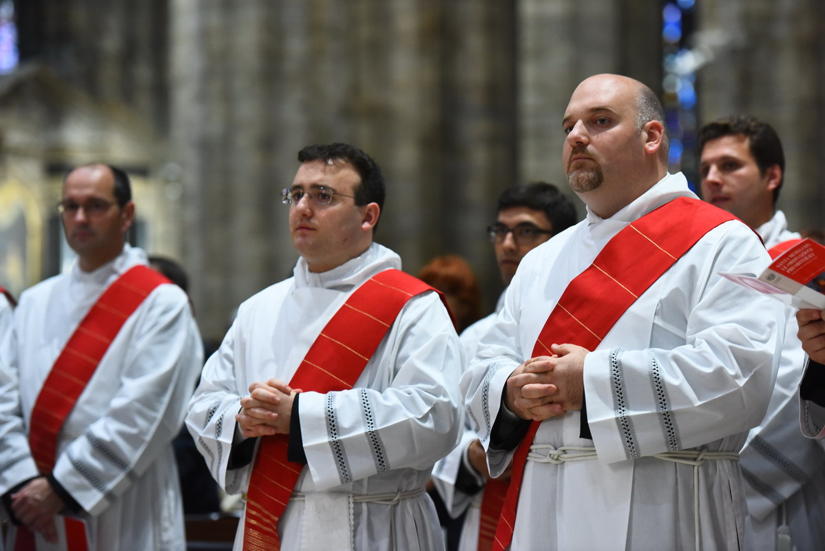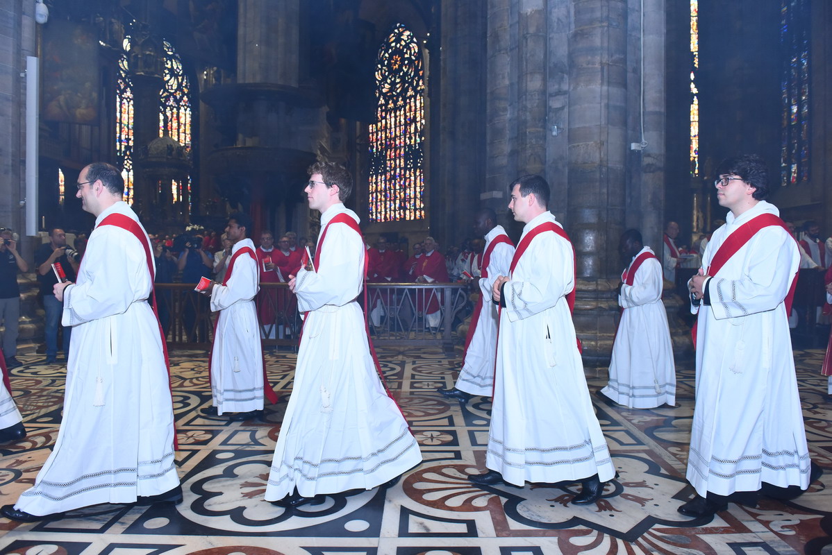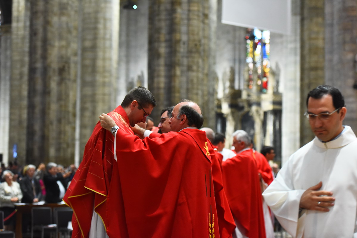L’Arcivescovo che ordina 29 nuovi sacerdoti, in un Duomo gremito di migliaia di persone mentre all’esterno tanti ancora attendono di poter entrare, dice con chiarezza cosa significhi donare l’intera vita al Signore facendo il prete. Anche se si proviene da vicende esistenziali differenti, da esperienze che parlano spesso di una vita precedente già impegnata nell’ambito lavorativo, di età e situazioni diverse. 23 i presbiteri ambrosiani 2018, 5 i candidati del Pontificio Istituto delle Missioni Estere (4 originari dell’India e 1 del Cameroun), 1 per la Congregazione Benedettina Olivetana dell’Abbazia di Seregno. Tra i 23, espressione della Diocesi, il più “anziano” ha 46 anni, i più giovani la metà: ci sono 3 ingeneri, 2 architetti, diplomati, ex legali ed ex bancari. Insomma, un universo variegato, ma tutti insieme, con emozione, sono davanti a monsignor Delpini, che per la prima volta presiede il Rito delle Ordinazioni presbiterali, concelebrato da 11 Vescovi – il cardinale Angelo Scola e il patriarca copto del Cairo, Sidrak Ibrahim Isaac, assistono –, da 50 tra Vicari episcopali, Canonici del Duomo, Superiori ed Educatori del Seminario con il rettore, monsignor Michele Di Tolve e da oltre 300 sacerdoti. Tra i concelebranti anche l’abate dell’Abbazia di Seregno, Monsignor Michelangelo Tiribilli e il Superiore generale del Pime, padre Ferruccio Brambillasca.