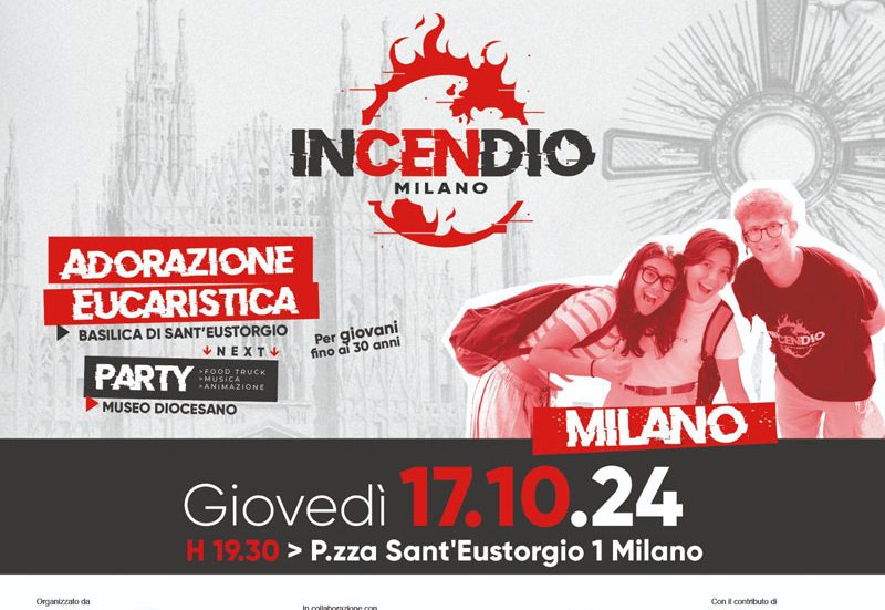 Sono previsti, tra ottobre e luglio 2025, cinque grandi eventi per i giovani fino a 30 anni, che potranno trovare in «INcenDIO» preghiera, relazioni, e, perché no, anche divertimento. Il programma delle serate è il medesimo: adorazione eucaristica, e, a seguire, un tempo di aggregazione. La prima data proposta è per giovedì 17 ottobre, alle 19.30. Il ritrovo è a Milano, presso la Basilica Sant’Eustorgio, per il momento di adorazione eucaristica. La serata proseguirà presso il Museo Diocesano Carlo Maria Martini, tra musica, animazione e possibilità di cenare grazie alla presenza di food truck. La seconda serata è in calendario il 12 dicembre 2024.