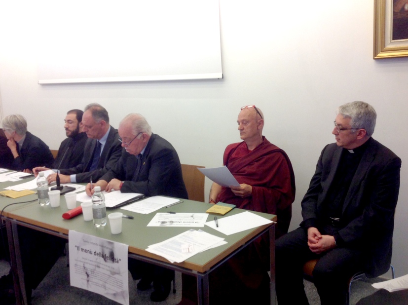 Appassionato l’intervento del pastore della Chiesa Evangelica Valdese, Giuseppe Platone, che ha preso avvio dall’evidenza «che Dio ha un disegno personale su ciascuno e che, quindi, comprenderlo è la felicità che significa adempiere la volontà del Signore». E se tocca a noi scoprire i nostri “talenti”, «la dieta per nutrire questa felicità è quella di sfamarsi del pane della Parola di Dio, come dice l’ebreo Gesù». Richiamando che nella tradizione protestante non esistono prescrizioni religiose sul cibo, Platone ha aggiunto: «I nostri digiuni, spesso fatti per protestare contro le ingiustizie», sono un segno, ma la preghiera che può precedere il nutrirsi «ci ricorda, comunque, l’atteggiamento di sobrietà contro lo spreco che è un insulto verso chi non ha niente». In questo senso esemplare, secondo Platone, la cucina valdese con il suo piatto tipico, la “Zuppa Barboetta”, piatto poverissimo di pane secco in un brodo di gallina, con qualche pezzetto di salame. «Per entrare in Expo, ci aggrappiamo al concetto conciliare emerso a Vancouver nel 1983 nell’Assise Mondiale delle Chiese Cristiane: Pace, Giustizia e Salvaguardia del creato, in cui è chiara l’idea che, come Chiese, dobbiamo dare il buon esempio».
