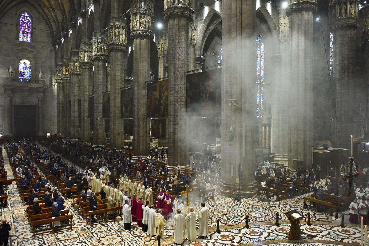 Speranza, coraggio, fiducia, ma anche fantasia, voglia di camminare insieme, affrontando «con azioni pastorali inedite sfide inedite». Sono questi i sentimenti, cui dà voce l’Arcivescovo, in Duomo, aprendo ufficialmente la fase diocesana del Sinodo universale dei Vescovi e conferendo il mandato ai “Gruppi Barnaba”, durante la celebrazione nella Festa della Dedicazione della Chiesa Cattedrale. Messa partecipatissima – come tradizione celebrata nella terza domenica di ottobre -, ma quest’anno particolarmente attesa proprio per il suo significato di avvio, come sottolinea, nel suo intervento iniziale, il vicario generale monsignor Franco Agnesi. «Nelle Diocesi italiane si apre, in sinergia col Sinodo universale, il cammino sinodale che vuole aiutare a riscoprire il senso dell’essere comunità, il calore di una casa accogliente e l’arte della cura. Come hanno scritto nel messaggio i Vescovi, Sogniamo una Chiesa aperta, in dialogo. Non più “di tutti” ma sempre “per tutti”. Nella nostra Chiesa ambrosiana il cammino sinodale inizia con voi, fratelli e sorelle dei Gruppi Barnaba, chiamati a immaginare le future Assemblee Sinodali Decanali che caratterizzeranno lo stile di presenza della Chiesa nei nostri territori geografici ed esistenziali».