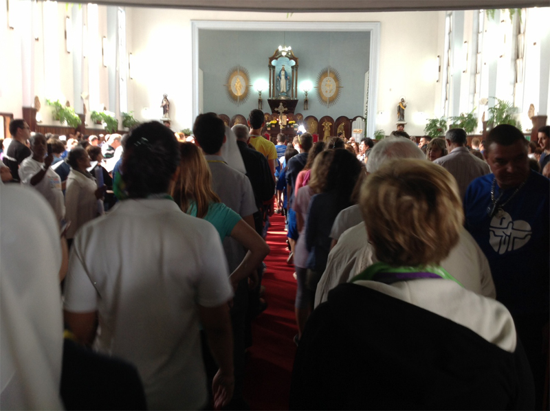 Oggi la partenza in pullman per raggiungere Rio de Janeiro, che dista 400 chilometri da San Paolo, e tappa al Santuario dell’Aparecida. L’arrivo è previsto nel pomeriggio dove i 60 giovani che hanno vissuto a San Paolo la Settimana missionaria si uniranno al gruppo degli ambrosiani. Nei prossimi giorni in programma le catechesi a tema tenute in diverse lingue dai vari Vescovi presenti, tra i predicatori anche mons. Delpini. «Quello che ci è stato raccomandato – dice il Vicario generale – è di non tenere delle lezioni, ma di offrire una testimonianza, con parole che vengono dal vissuto, quindi dall’essere Chiesa di Milano con la sua tradizione di cura per i giovani».
