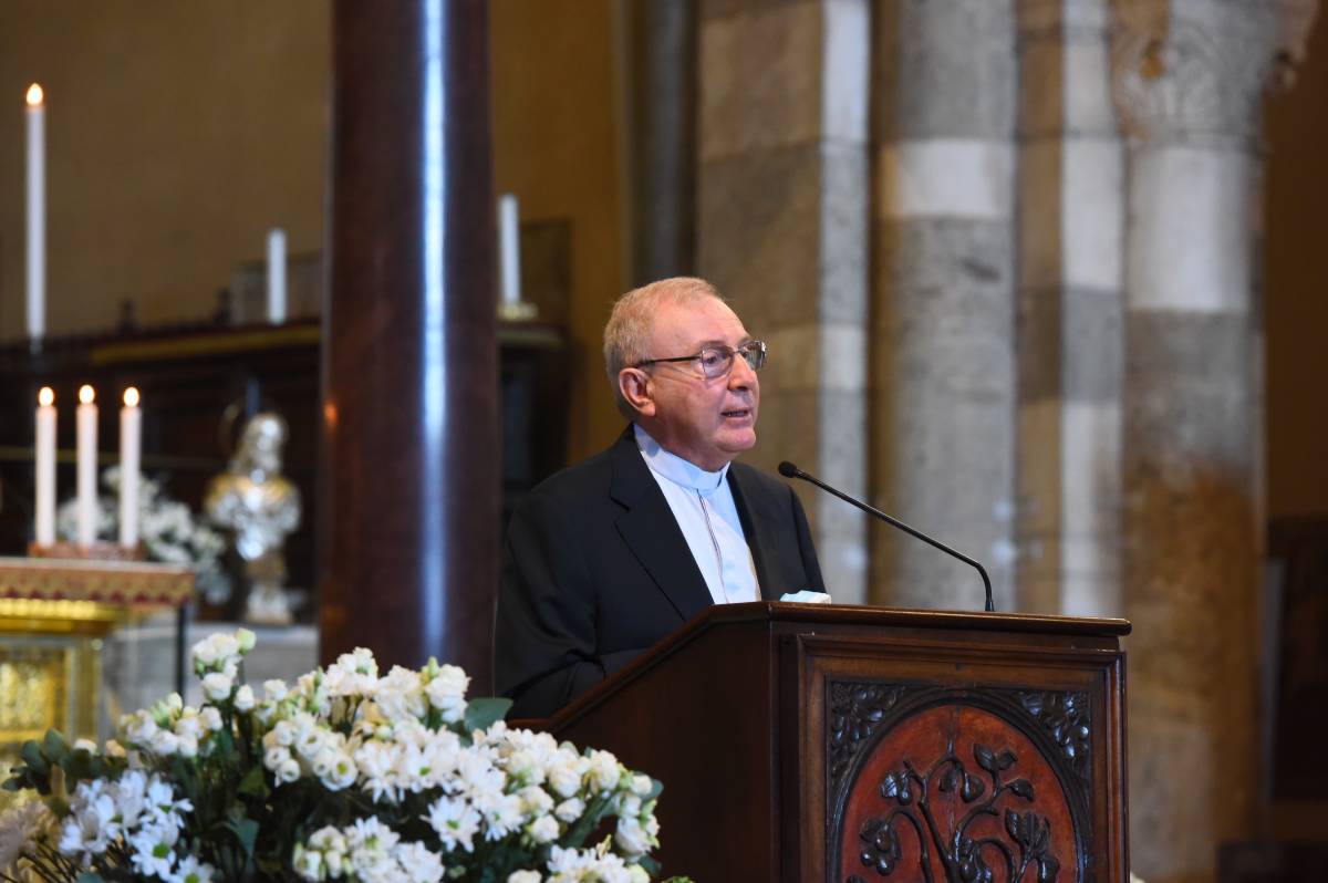Prima della Messa l’abate di Sant’Ambrogio monsignor Carlo Faccendini ricorda quanto l’insegnamento sia «una delle avventure più belle e più di difficili, resa ancora più complessa, oggi, dalla pandemia, e come la preghiera possa aiutare perché ognuno ritrovi lo stile e il valore del coinvolgersi facendo squadra per far crescere i ragazzi». Parole cui fa eco il saluto di benvenuto di don Alberto Torriani, rettore del Collegio, che concelebra e dice: «La scuola è come un veliero con tre vele, i docenti, le famiglie, gli studenti e le studentesse. Le chiediamo di guidarci nella preghiera perché ci restituisca la voglia di ascoltare il soffio dello Spirito anche in futuri che sembrano complicati da sostenere». Un “viaggio”, quello di questo grande e tribolato veliero umano, che si nutre – come suggerisce, appunto, l’Arcivescovo nella sua omelia – di parole: «Ci sono parole come zanzare fastidiose e irritanti. Sono le parole amare che esprimono l’invidia e il risentimento, espressioni che mortificano, parole che pungono, battute che vorrebbero essere spiritose e, invece, fanno male perché umiliano magari le persone per un piccolo difetto. La scuola è la casa della parola e all’inizio di un anno bisognerebbe fare il proposito che vengano bandite le parole zanzare».