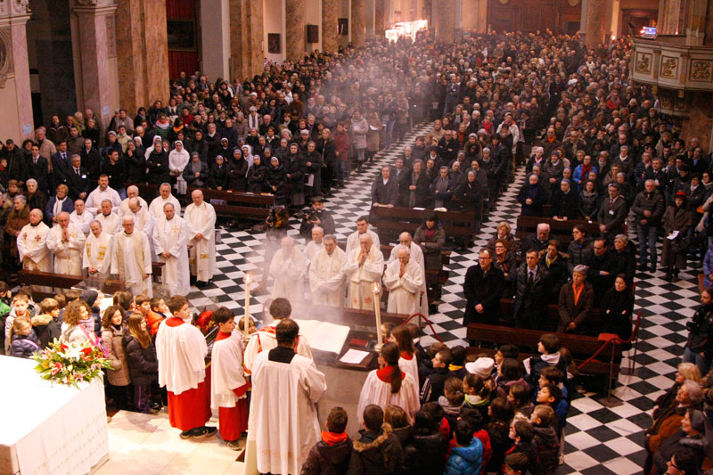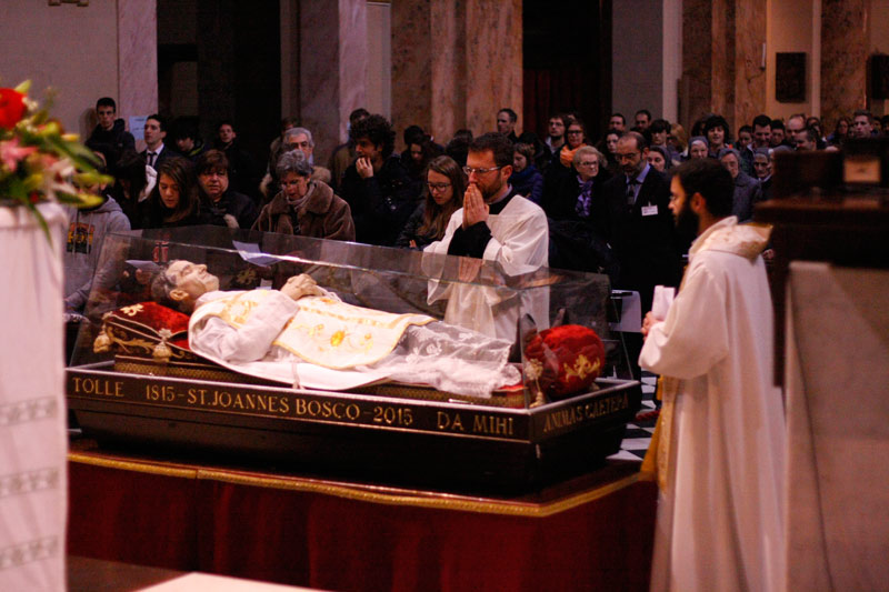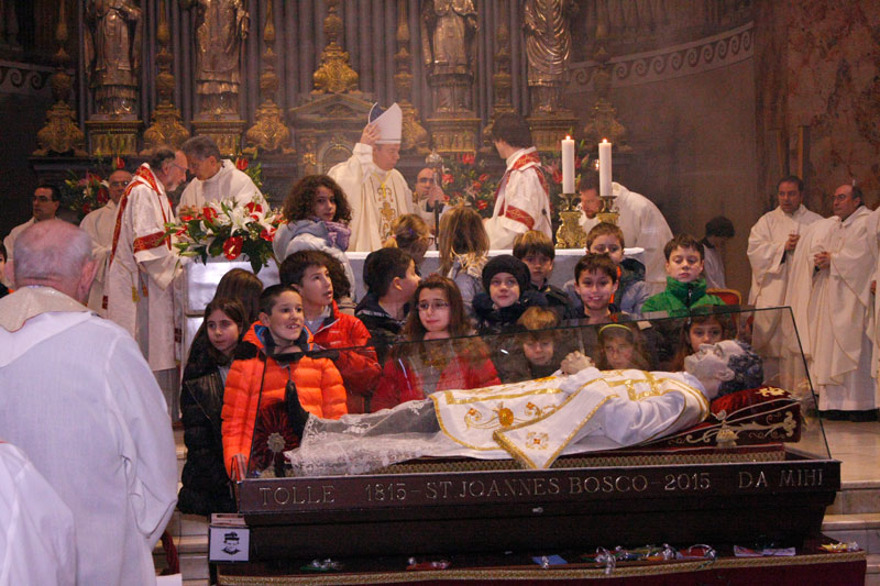 «Ragazzi, vi abbiamo messo qui davanti perché vogliamo che voi diventiate come don Bosco», ha detto don Filippo al termine della Messa. E proprio la Messa è stato il momento centrale, con una Basilica che non è riuscita a contenere la folla. «Davanti a questa urna ci è chiesto di compiere gesti veri di fedeltà e preghiera – ha sottolineato il Vicario episcopale della III Zona pastorale monsignor Maurizio Rolla, insieme al prevosto monsignor Franco Cecchin e a decine di sacerdoti -. Questo è lo stimolo a scoprire di che pasta è fatta la nostra fede. Aiutaci Signore a custodire il nostro cammino sulle Tue tracce, partendo dall’esempio di don Bosco che oggi abbiamo potuto incontrare».