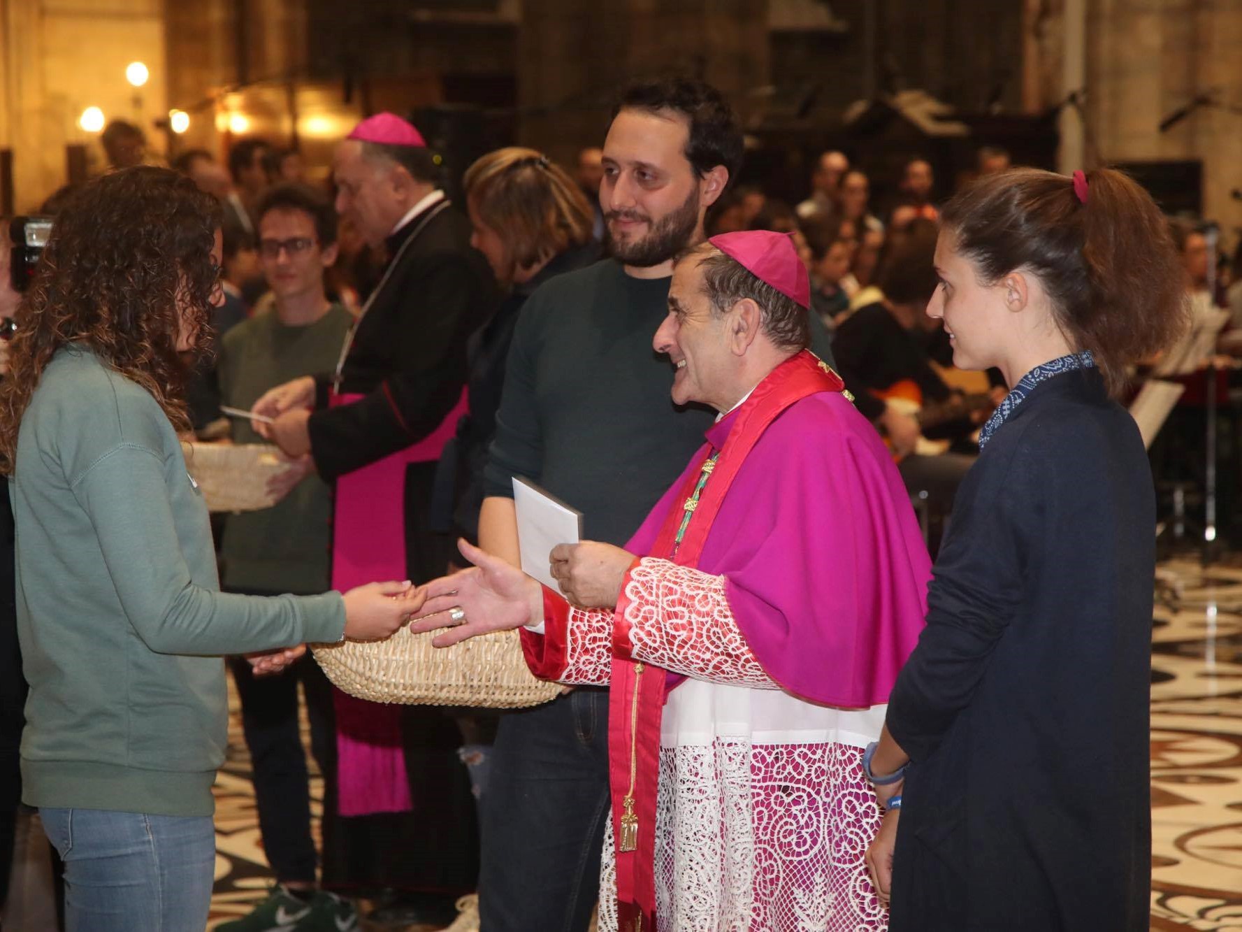 Per l’Arcivescovo, che presiede la Veglia in cui i 19enni consegnano la Regola di vita, è il primo incontro con i giovani che, in Duomo, arrivano in 5000, provenienti da ogni zona della Diocesi con i loro sacerdoti e gli educatori. In altare maggiore, accanto a monsignor Delpini, ci sono i responsabili del Servizio per i Giovani e l’Università, don Massimo Pirovano, della Sezione Università, don Marco Cianci, il direttore della FOM, don Stefano Guidi e l’assistente ecclesiastico diocesano dei Giovani di Azione Cattolica, don Luca Ciotti.