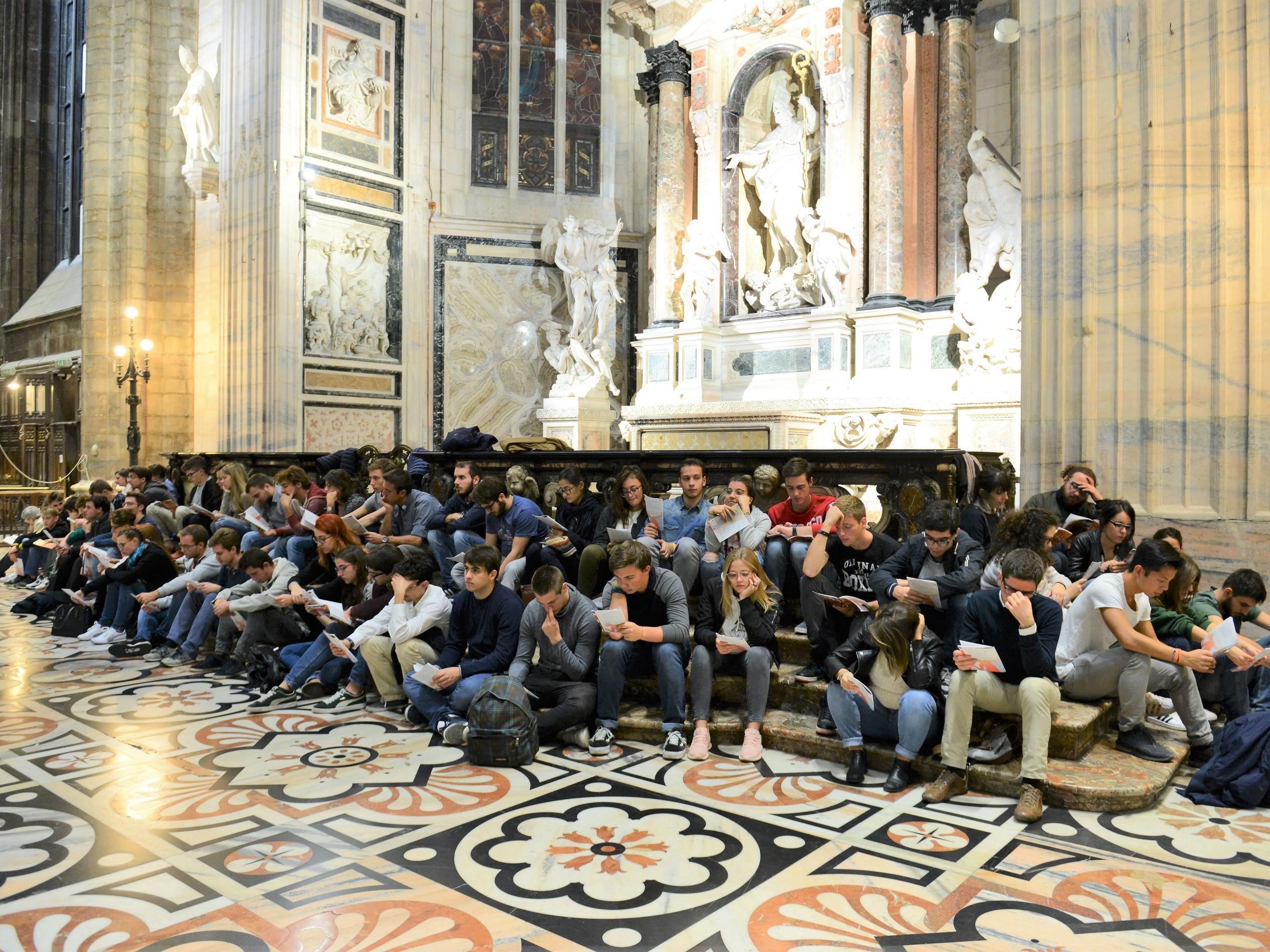 E che non sia un incontro come tanti altri lo si capisce da un’ultima raccomandazione, anzi un «editto», come lo definisce scherzosamente l’Arcivescovo: «Mi sembra di poter dire che voi siete coloro su cui io posso contare. Giovani che stabiliscono un patto di amicizia e questo, al di là dei numeri, mi esalta. Vorrei, allora, emanare un editto: quando incontrate il Vescovo, il modo di salutarmi sarà “Chaire” che, in greco, significa “Rallegrati”, e io capirò che stasera eravate in Duomo, vi riconoscerò».