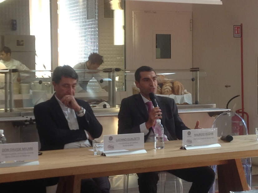 «Un’occasione bella e che abbiamo subito voluto cogliere e condividere», spiega l’amministratore delegato di Zini, Maurizio Vezzani, presente al Refettorio unitamente a don Davide Milani e Luciano Gualzetti, vicedirettore di Caritas Ambrosiana e vicecommissario del Padiglione della Santa Sede in Expo. È, infatti, lui a ricordare: «La presenza ecclesiale e la Caritas si sono fatte portatrici nell’Esposizione di questa attenzione a chi è in difficoltà e a chi non riesce a sfamarsi, soprattutto nel Sud del mondo, dell’allarme lanciato per i 53 milioni di persone che hanno povertà alimentari in Europa, degli appelli per denunciare le ingiustizie economico-finanziarie, lo sfruttamento indiscriminato delle risorse e le povertà che ne derivano, sensibilizzando soprattutto chi governa e ha responsabilità decisionali». E tutto secondo quella logica cha ha permesso la nascita e l’avvio di una sostenibilità del “farsi prossimo” che ha portato, fino a oggi, a ridistribuire ben 15 tonnellate di cibo che in Expo sarebbero state gettate e che invece sono state utilizzate dal Refettorio, nella misura di 10 quintali, e da altre mense Caritas per altri cinque. Da qui la ricerca di nuove sinergie per il dopo- Esposizione secondo il meccanismo del crowdfunding, consolidando collaborazioni già esistenti, ma aprendo anche nuove strade, attraverso «un azionariato diffuso della beneficenza».