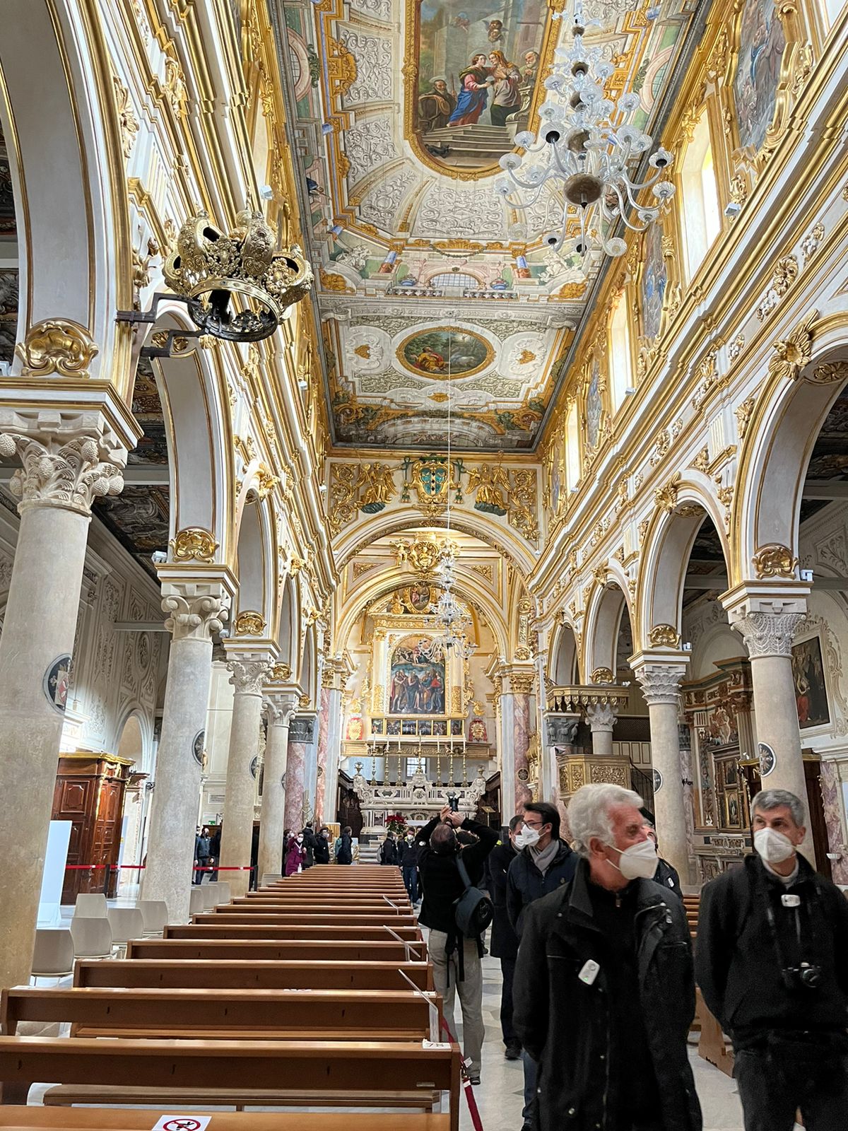 Alle 17 ci trasferiamo presso la Cattedrale, dove monsignor Caiazzo celebra l’Eucaristia, sottolineandone la centralità nella vita del sacerdote, perché indica chiaramente che il prete è chiamato anzitutto a stare con il Signore e a offrire a Lui la vita per il bene di tutto il popolo di Dio. Il sacerdote ha infatti la missione di far «tornare al gusto del pane» Eucaristico, l’unico che dà sapore alla vita.
