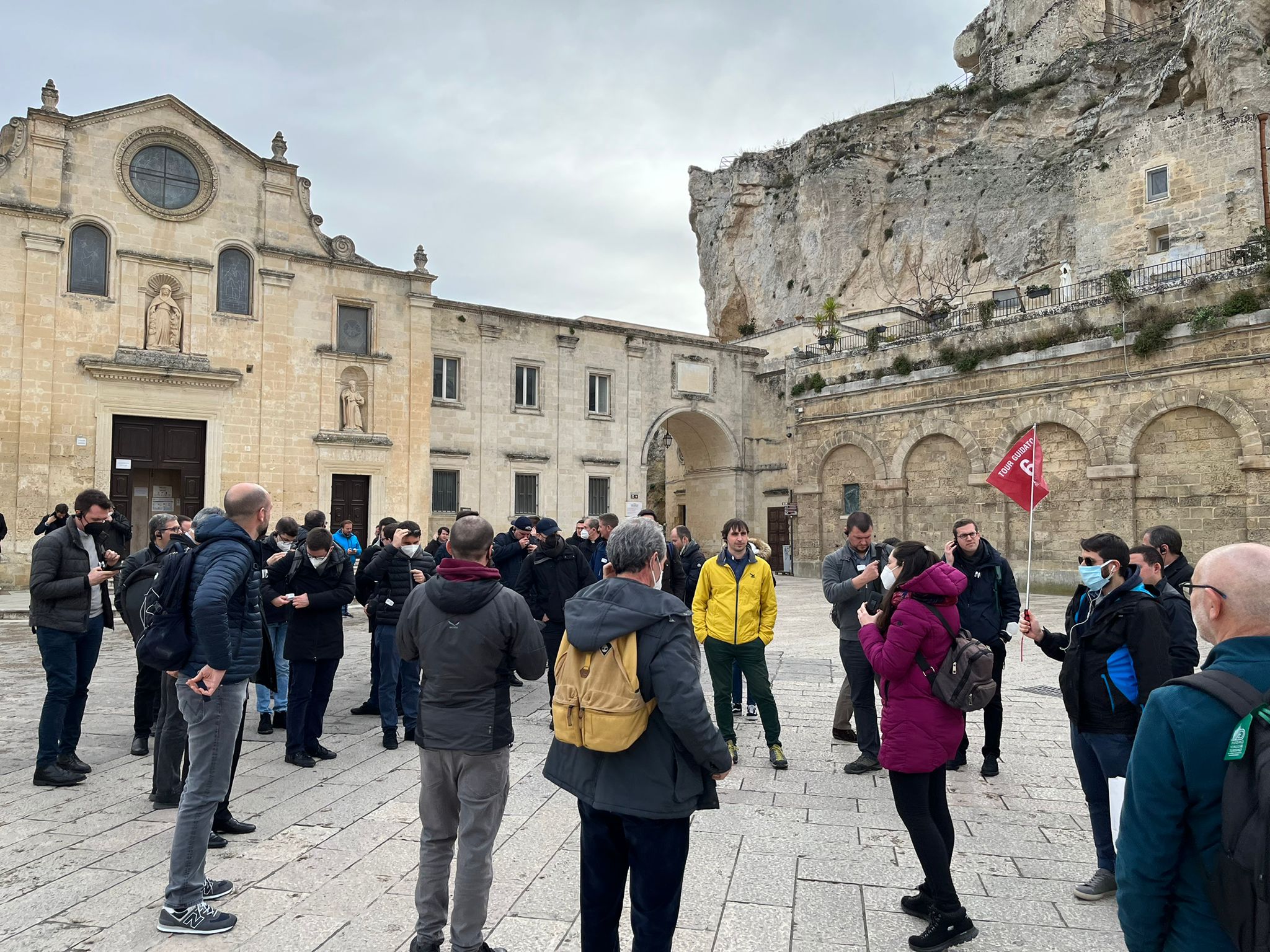 L’incontro con gli operatori delle cooperative sociali è l’appuntamento del pomeriggio. Intervengono il dottor Giuseppe Bruno, presidente di Confcooperative Regione Basilicata e presidente del consorzio La Città Essenziale di Matera; la signora Rosangela, presidente di Oltre l’Arte (le cui guide ci hanno accompagnato il mattino) e alcuni giovani di quest’ultima cooperativa. Queste cooperative hanno l’obiettivo di corrispondere a diversi bisogni ed esigenze del territorio, che vanno dallo sviluppo del turismo alla rigenerazione urbana, dall’assistenza domiciliare all’offerta educativa e molto altro.