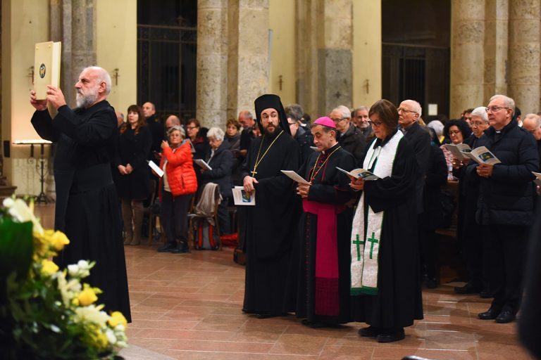 La confessione di fede, le invocazioni, ancora l’ascolto della Parola in uno stralcio dell’Apocalisse, il Padre Nostro e la benedizione concludono la preghiera accompagnata, nella processione finale, dalle note del Te Deum di Sant’Ambrogio. In dono a tutti viene offerto il calendario 2019 del Consiglio delle Chiese cristiane di Milano per il 2019, «nel quale viene fatto conoscere il ritmo delle nostre Chiese. Questo ci permette di avere stima delle comunità che abitano vicino a noi consentendoci di giungere a una comunione intensa», evidenzia don Savina.