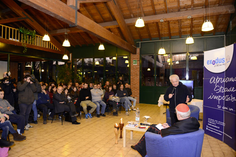 È stato don Mazzi, introducendo l’incontro con il Cardinale, a ricordare come trent’anni fa diede vita a Exodus accogliendo i tossicodipendenti del parco Lambro convinto che non fossero dei malati da curare. Il sacerdote ha spiegato il suo particolare metodo di intervento, definito “dell’oratorio”, basato cioè sul farsi carico delle persone ricorrendo agli insegnamenti di don Bosco, vale a dire l’ascolto e l’amicizia.