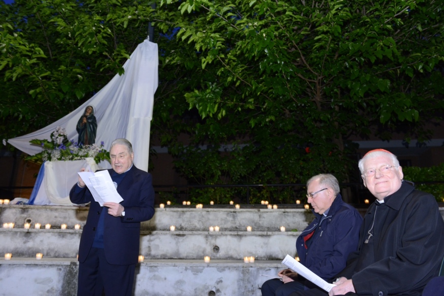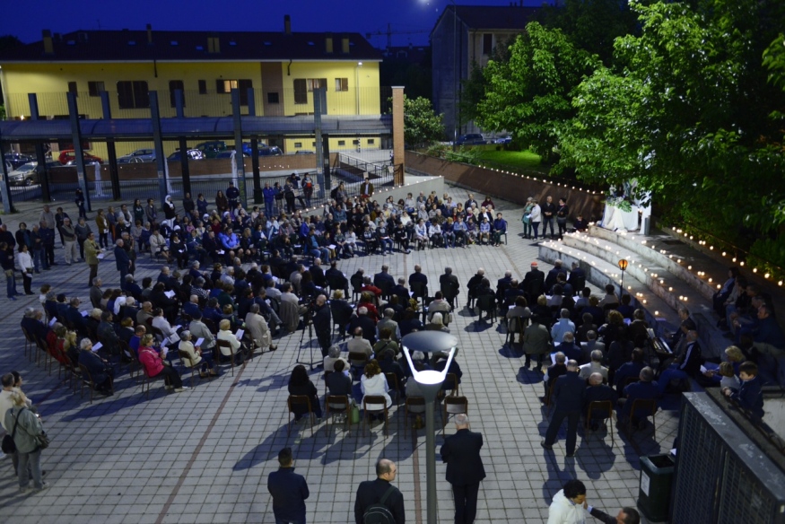 È la recita del Rosario con il cardinale Scola, che prosegue, così, la sua scelta di entrare – attraverso la preghiera mariana – in luoghi segnati da antiche e nuove difficoltà, l’anno scorso nella periferia multietnica di Milano e tra i casermoni di Quarto Oggiaro, quest’anno, all’inizio di maggio, nella parrocchia di Santa Marcellina in Muggiano-Baggio, dove il parroco è stato sospeso dall’incarico, a marzo, a causa di un’inchiesta giudiziaria. Accanto all’Arcivescovo ci sono il vicario episcopale di Zona I-Milano, monsignor Carlo Faccendini e i preti del Decanato Baggio, con il Decano facente funzione, don Paolo Citran, le suore Missionarie della Carità di Madre Teresa di Calcutta, che a Baggio operano in una Casa di accoglienza, i volontari, gli anziani che hanno visto un’altra Muggiano e i bimbi che, magari, vengono dall’altra parte del mondo.