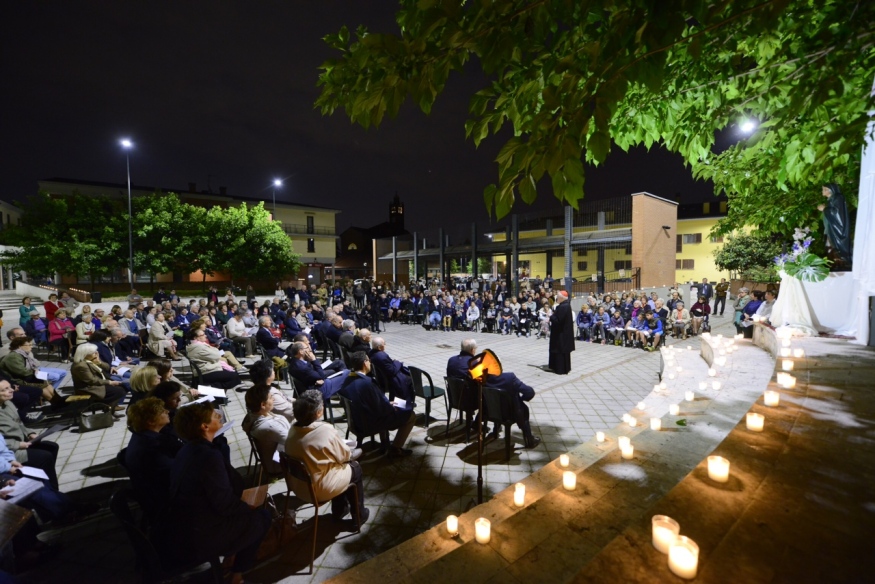 E proprio cinque diverse realtà simboliche animano la recita dei Misteri della Gioia, i bimbi dell’iniziazione cristiana, i volontari, due genitori con i loro tre figli, Luvigi, un ragazzino arrivato un anno fa dallo Sri Lanka, i giovani. «Vogliamo pregare per questo mondo in movimento, per le famiglie, per il meticciato di civiltà come arricchimento di umanità, per la sfida dell’accoglienza, per i giovani segnati da precarietà e difficoltà di inserimento, perché non si lascino rubare la speranza», sottolinea don Ventura, indicando le intenzione dei Misteri.