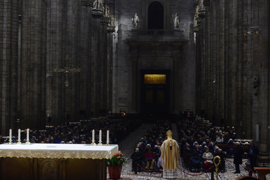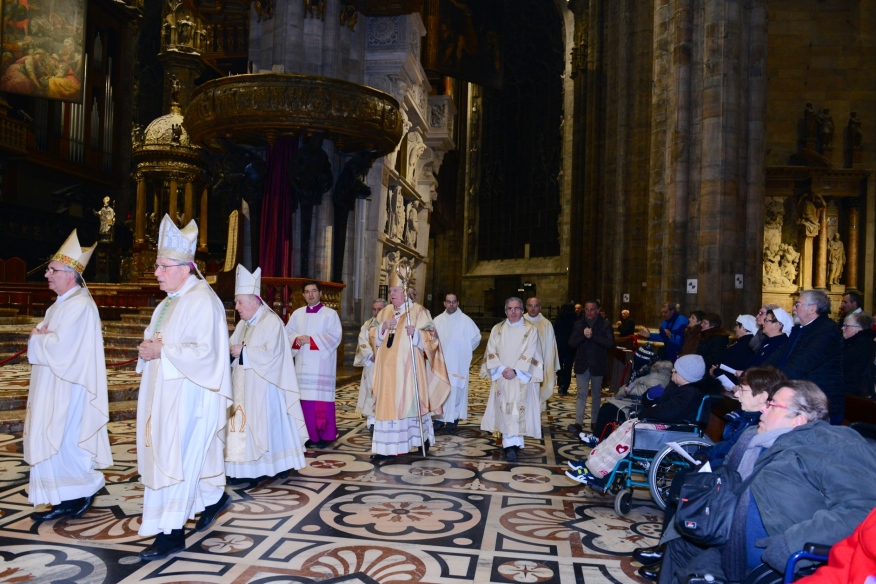E, alla fine, dopo il ringraziamento ai fedeli delle Zone pastorali VI e VII con i rispettivi Vicari episcopali, monsignor Elli e monsignor Cresseri, ai membri dell’Agesci, ai malati e volontari dell’Unitalsi lombarda accompagnati da monsignor Busti, assistente ecclesiastico regionale; al Terz’Ordine francescano, anche loro con l’assistente lombardo, all’Associazione “Sposi di Cristo” e al Centro di Formazione professionale “Ikaròs” di Buccinasco – sono presenti anche rappresentanti del Commissariato “Zona Centro” della Polizia di Stato con l’assistente don Gianluca Bernardini –  ancora la raccomandazione di non lasciare alle spalle l’Anno giubilare, di praticare le opere di misericordia e di recitare quotidianamente l’Angelus. «Una pratica di pietà molto profonda che concentra in  sé tutti i misteri della nostra fede e il dono offerto a noi di parteciparvi».