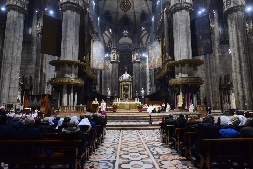 Nella Domenica, ultima dell’Avvento, nella quale si celebra la Divina Maternità di Maria – la più antica festa mariana della Liturgia ambrosiana –, sono migliaia i fedeli che, in Duomo, partecipano all’Eucaristia presieduta dal cardinale Scola e concelebrata da tre Vescovi e dal Capitolo Metropolitano.