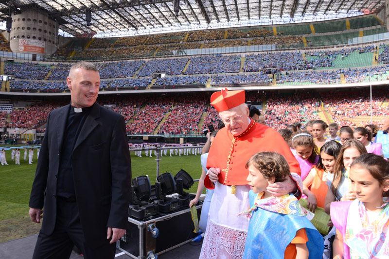 Il cardinale Scola, nello stadio Meazza ha incontrato cinquantamila ragazzi della Cresima 2014 e i loro genitori ed educatori. Ai giovani ha detto: «Nel Signore avete un alleato potente che fa trionfare il bene»