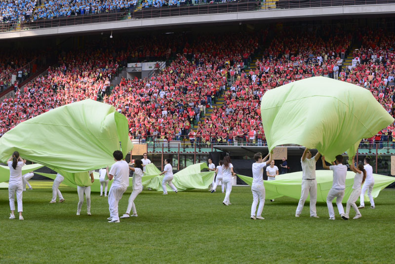 Poi, ancora l’intenso momento della preghiera di intercessione, il gesto di carità, con la raccolta di offerte per la costruzione di un pozzo e una fattoria a Katako in Congo, e il passaggio del testimone, prima che il Cardinale con i Vescovi e i Vicari compia un ulteriore, trionfale giro del campo di San Siro, accompagnato dalla ola tra gli spalti.