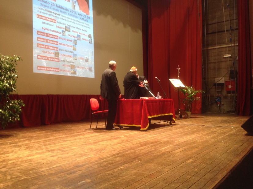 È il Decanato di Azzate dove, nel Cine Teatro Castellani della cittadina omonima,  inizia la Visita Pastorale del cardinale Scola con un corale segno della croce e uno scambio di pace.