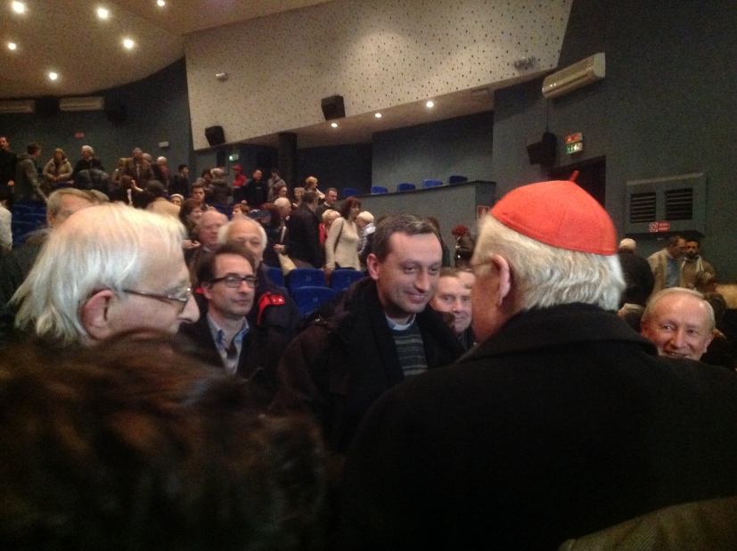 Poi, subito, il dialogo: «Come si può fare delle nostre comunità un luogo di educazione al dialogo?», «Come essere “Chiesa in uscita” per portare il Vangelo nelle strade del mondo?». Interrogativi che l’Arcivescovo situa, entrambi, nel quadro della situazione attuale: «Dobbiamo affrontare il cambiamento radicale in atto, doloroso per le dimensioni tragiche che sta assumendo. Basti riflettere sulle scoperte della biotecnologia e delle neuroscienze, sul mutamento della cultura del lavoro e del rapporto tra economia e finanza, sulla questione dell’evoluzione dei temi affettivi, sulla civiltà delle reti e il meticciamento di civiltà». In questa logica, per “uscire” nel campo che è il mondo, suggerisce allora Scola, tocca a noi fare il primo passo nel quotidiano: «Pensiamo a ciò che è accaduto in queste ore: se le cose sono andate come a Parigi, chiediamoci come giovani che sono nati, hanno studiato e lavorato in Europa, hanno avuto come unico ideale impazzito buttar via la propria vita per ammazzare altri. Questa è una provocazione di Dio alla nostra esistenza».