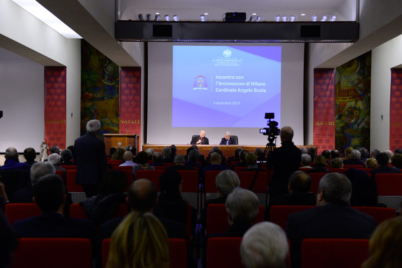 Lo dice chiaro il cardinale Scola, mentre scroscia l’applauso, nella grande sala dei Convegni della Confcommercio, dove per ascoltarlo si danno appuntamento centinaia di rappresentanti e associati di Milano, Monza Brianza e Lodi e dei comuni compresi nel territorio della Diocesi.