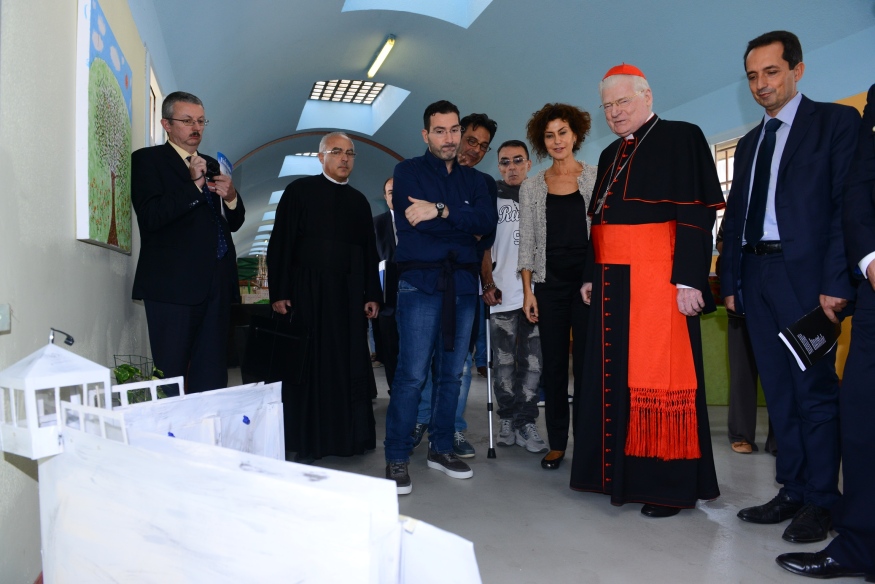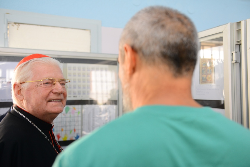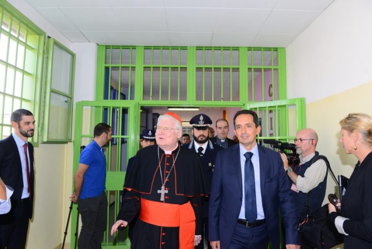 Accompagnato dal direttore della struttura, Giacinto Siciliano, dalla Presidente di Poste italiane Luisa Todini, e da Mauro Olivieri, direttore dell’Ufficio Filatelico e Numismatico dei Musei Vaticani, dai detenuti, il Cardinale percorre il lungo corridoio dove si sofferma sui tanti pezzi della rassegna.