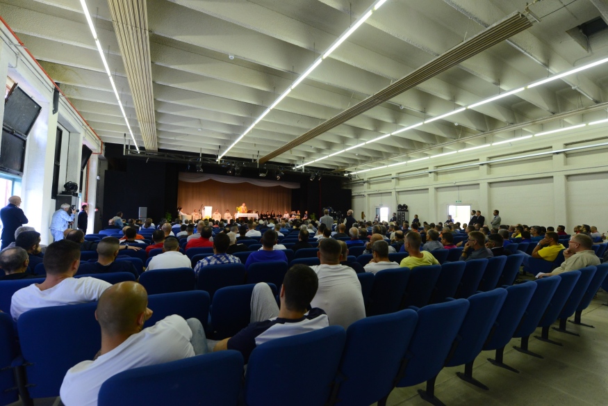 Parlano don Loi e il direttore Siciliano che spiega, rivolto al Cardinale: «Lei ci invitò a pranzo il giorno dell’Epifania di due anni fa, da quel momento è iniziato un cammino e tante cose sono cambiate. Questo è l’Anno del Misericordia e abbiamo voluto fare in modo che il mondo incontrasse il carcere, incrementando gli incontri con le famiglie, i colloqui, il Laboratorio delle ostie. Porteremo dal Papa il nuovo spettacolo ispirato alla parabola del Figliol Prodigo. Tra i tanti percorsi che si sono avviati c’è il concetto del perdono: abbiamo lavorato perché i detenuti imparassero a perdonare soprattutto loro stessi e a comprendere che si può diventare diversi, perché il carcere possa essere non un peso per la società, ma una grande risorsa».