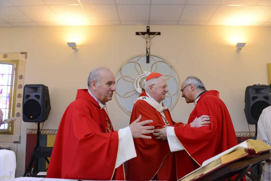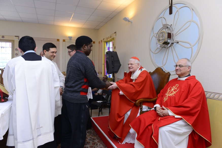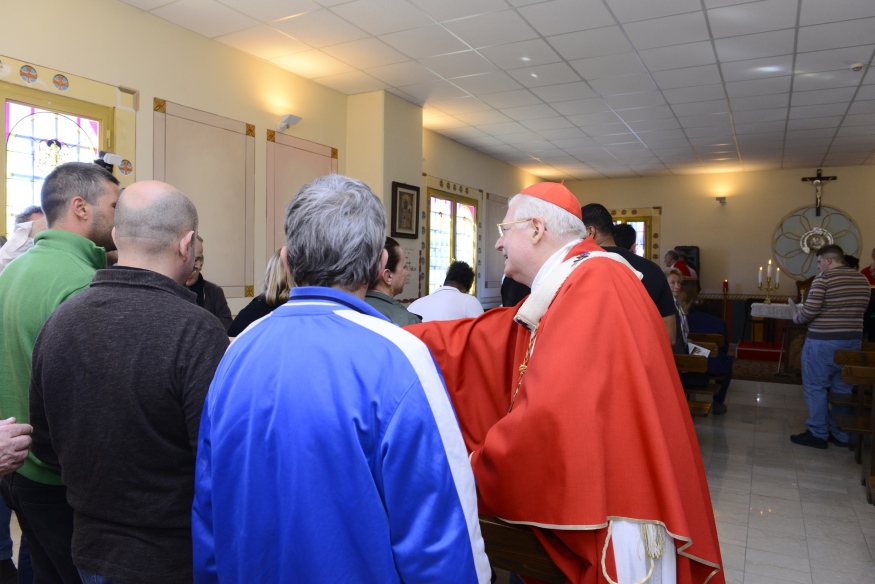 Il lungo scambio della Pace, con il Cardinale che si porta tra le panche della chiesa e stringe la mano a ognuno dei carcerati è come la cifra simbolica del dialogo che inizia al termine della Celebrazione.