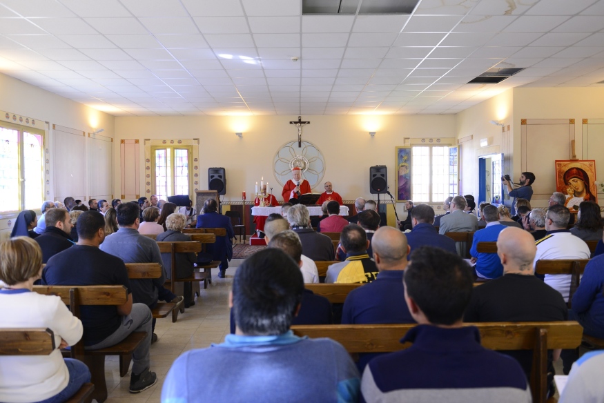 A tutti si rivolge direttamente la riflessione del Cardinale che presiede l’Eucaristia, dopo aver visitato il reparto di fisioterapia e riabilitazione che accoglie anche detenuti provenienti da altre carceri. Di fronte anche ai volontari, a tanti agenti della polizia penitenziaria con il loro responsabile, il vicecommissario Antonino Rizzo – ci sono anche i due seminaristi di IV e V Teologia che periodicamente svolgono servizio tra le celle –, l’Arcivescovo ricorda la Settimana santa e il sacrificio dell’Innocente assoluto, Gesù morto e risorto per ognuno. «Tutto questo ci dice che l’amore di Cristo non viene mai meno qualsiasi sia la situazione in cui ci troviamo, anche se si è chiusi a un’espressione totale della libertà, Sono felice che possiate trovare delle terapie e delle cure, che sia diminuito il numero egli ospiti, ma soprattutto capisco che questo è, comunque, un tempo di fatica e di affetti lontani. E vi invito, allora, a mettere questa sofferenza nelle mani del Signore».