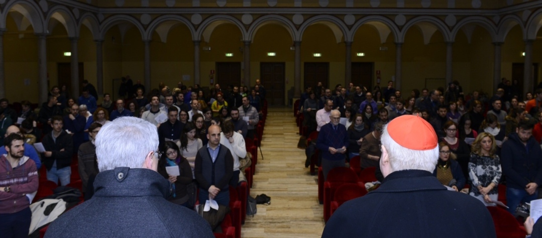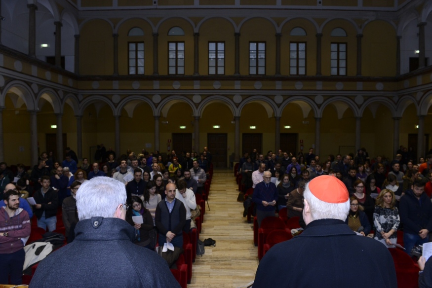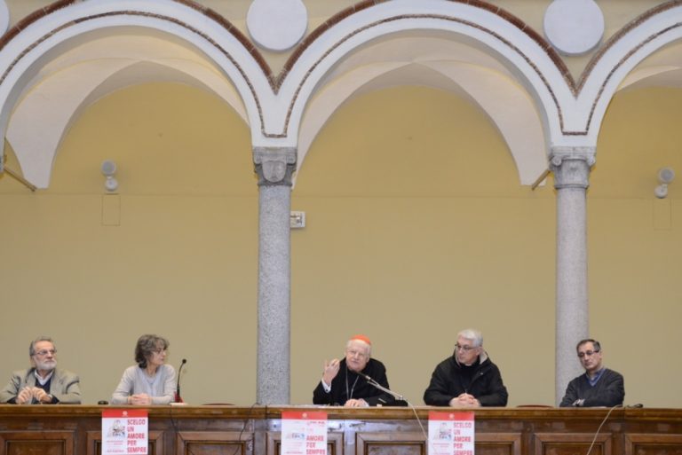 Un incontro molto desiderato molto e voluto per «dare maggiore consapevolezza alla promessa del per sempre che questi giovani si scambieranno il giorno delle nozze». Arrivano alla spicciolata, ma alla fine, sono più di un centinaio le coppie, appunto, che si ritrovano presso il Centro Diocesano di Milano, per ascoltare e dialogare con l’Arcivescovo, cui sono accanto il Vicario episcopale di Settore, monsignor Luca Bressan e i responsabili del Servizio per la Famiglia, don Luciano Andriolo, il diacono Luigi Magni e la moglie Michela Tufigno, a loro volta, come ricordano, sposi da 32 anni. Il titolo dell’incontro, “Scelgo un amore per sempre” è, così, anche il filo conduttore dell’intera riflessione del Cardinale che, con i fidanzati, si confronta tra domande e risposte stringenti, partendo da una premessa precisa.