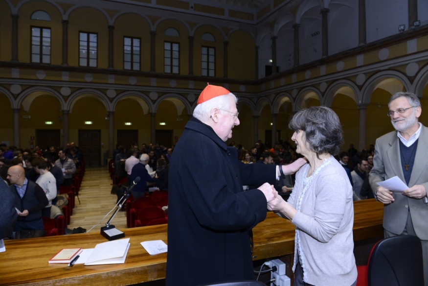 E, infine, prima di uno scambio amichevolissimo di saluti con i tanti che gli si avvicinano, un ultimo, paterno, consiglio «Non fate l’errore di chiudervi, la Comunità e la Chiesa sono la base per vivere quel “Tu”. È fondamentale l’appartenenza solida a un’amicizia cristiana, che genera uno stile di rapporto basato su Cristo stesso, che è il garante, carico di amore, del destino della coppia e della famiglia in cui i figli sono un surplus di amore. Non abbiate paura, perché nella Chiesa c’è spazio per tutti, certo, a talune condizioni. Affrontate tutti i problemi quotidiani alla luce non del pensiero dominante, ma di quello di Cristo. Avete il grande compito di costruire famiglie che siano chiese domestiche».