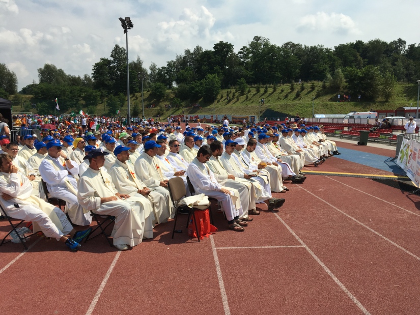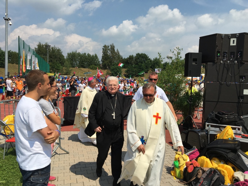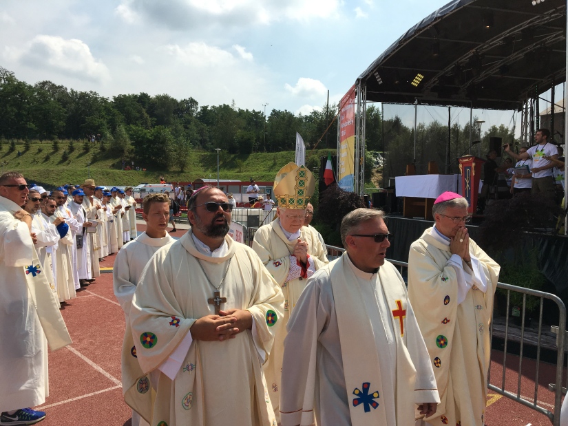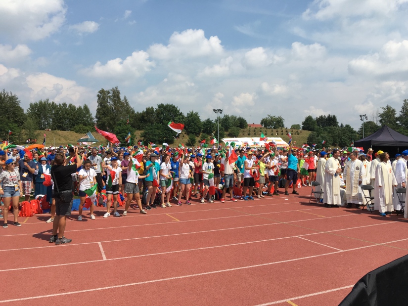 La mattinata si è aperta con la terza catechesi. Come attuare le opere di misericordia ed esserne testimoni nel mondo? Questa la domanda posta da monsignor Paolo Giulietti, Vescovo ausiliare di Perugia, ai giovani ambrosiani radunati per la terza e ultima volta presso il campo sportivo di Wieliczka. Monsignor Giulietti ha sottolineato con forza la necessità di pregare Dio affinché doni a tutti «occhi per vedere le necessità e le sofferenza dei fratelli e la luce della parola di Dio per confortare gli affaticati e gli oppressi». Soltanto l’incontro con il Signore nella sua parola potrà cambiare lo sguardo di tutti gli uomini verso gli altri e verso i problemi che irrompono nella nostra quotidianità. La parola di Dio potrà infatti dare senso alle fatiche e alle sofferenze di ogni giorno, cambiare il cuore e donare la forza per attuare e mettere in pratica opere di misericordia al servizio dei poveri e dei sofferenti.