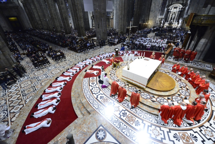 Lo dice, anzi lo scandisce, il cardinale Scola in Duomo di fronte alle migliaia di fedeli che lo ascoltano, ma soprattutto, quasi guardando, a uno a uno, i trenta nuovi sacerdoti che ordina per l’imposizione delle sue mani e la preghiera, poco dopo. Ventisei giovani uomini, da 25 ai 44 anni, espressione della Chiesa ambrosiana e quattro appartenenti alle Famiglie religiose Rosminiana, Francescana dei Frati Minori, dei Servi di Maria e Benedettina.