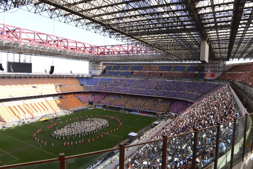 Inizia con queste parole, dopo aver salutato i ragazzi più sfortunati, portatori di disabilità, nel boato che lo accoglie al suo ingresso sul campo di San Siro, il cardinale Scola che incontra i cresimandi e cresimati 2015. I cinquantamila che già da ore sono sulle gradinate, fino al terzo anello, applaudono, salutano, espongono i manifesti con i nomi di paesi, parrocchie e oratori e raccontano anche così l’emozione e l’orgoglio di essere appunto tutti insieme con l’Arcivescovo, i Vescovi ausiliari e i Vicari episcopali, cui si aggiunge il vescovo di Kluges, in Romania, monsignor Florentin.