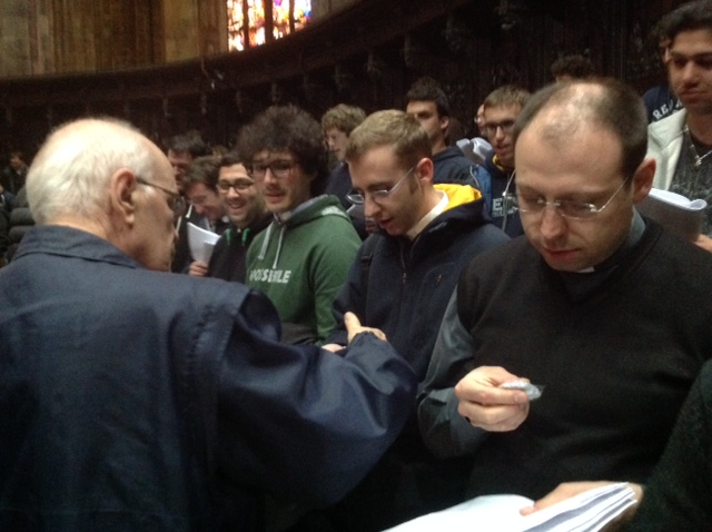 Il ringraziamento di don Michele Autuoro, direttore generale della Fondazione Missio, organismo pastorale della Cei, accanto a lui don Alfonso Raimo, segretario nazionale “Missio consacrati”, conclude il momento di preghiera prima di un ultimo richiamo, quasi paterno, del Cardinale: «Abbiate un buon soggiorno a Milano, nel nostro Seminario che è molto bello e dove si può pregare e raccogliersi. Incrementate l’amicizia fraterna tra voi che può portare un aiuto decisivo per la nostra stanca Europa. Fatevi coraggio, abbiamo molta fiducia in voi che porterete il peso di questa stagione delicata per i prossimi decenni».
