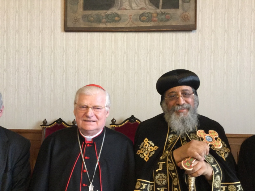 L’Arcivescovo di Milano, cardinale Angelo Scola, ha accolto sabato 9 maggio in Arcivescovado il Patriarca copto ortodosso Tawadros II, in Italia in questi giorni per la visita pastorale alle diverse comunità di cristiani egiziani. L’incontro, dai toni molto cordiali, ha ribadito gli ottimi rapporti tra le due comunità a Milano. «Siamo molto contenti per la vostra presenza qui a Milano, siete una realtà viva e significativa», ha detto Scola a Tawadros.