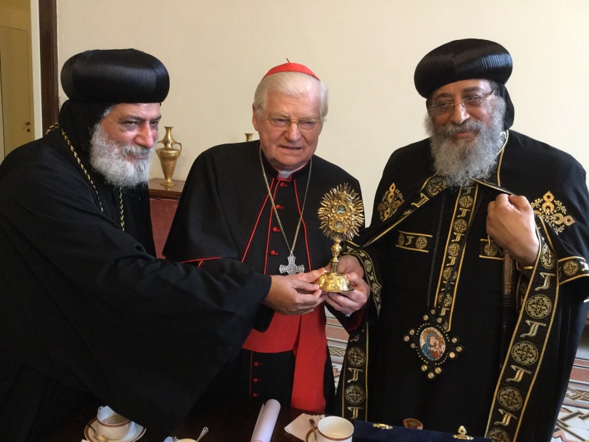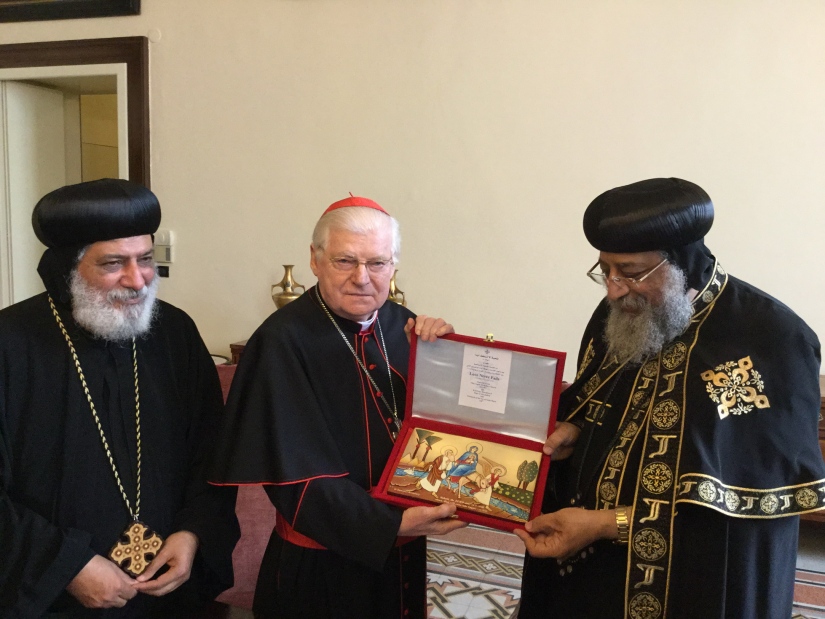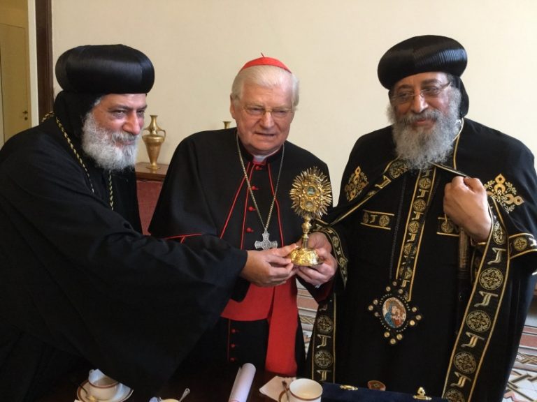 Una reliquia dal corpo di Sant’Ambrogio è stato il dono dell’Arcivescovo al Patriarca, una preziosa icona della fuga della Sacra Famiglia in Egitto l’omaggio di Tawadros II a Scola.
