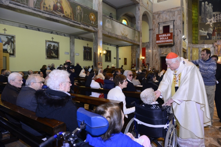 E, così, Scola percorre i lunghi corridoi del “Palazzolo” fermandosi spesso, recitando un’Ave Maria con i degenti, rivolgendo parole di augurio. Moltissimi coloro che partecipano alla Messa, radiodiffusa anche nei vari reparti, in prima fila ci sono il direttore dell’Istituto, Roberto Costantini e i malati con i loro familiari e poi, i medici, le suore Poverelle fondate proprio dal beato Luigi Palazzolo e le religiose della Carità, il personale a diverso titolo impegnato e che proviene da ben quaranta diversi Paesi del mondo.