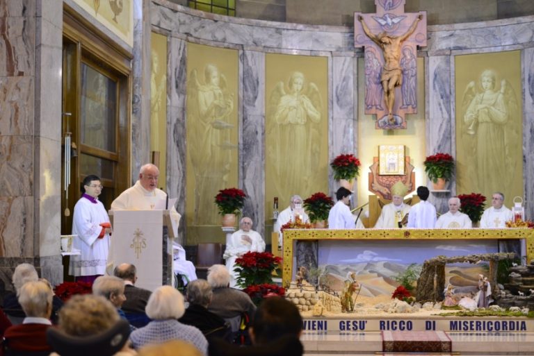 Nella chiesa, «cuore pulsante e affettivo luogo quotidiano di ritrovo, di preghiera personale e comunitaria», come dice ancora don Rasi, l’Arcivescovo riflette, nella sua omelia, sull’intera realtà del “Palazzolo”, «luogo di fragilità e di sofferenza, ma anche di letizia che viene dalla Misericordia di Dio, nel quale compiamo il gesto che rappresenta una preziosa occasione di conversione, soprattutto in questo anno straordinario della Misericordia, in cui tutti sono chiamati a riconoscere il bisogno di compiere fino in fondo la propria esistenza e umanità, indipendentemente dagli errori, dalla malattia e dall’età. Il riconoscimento del Dio che viene e della maternità della Vergine rappresentano una possibilità di riscatto e di amore tenero che possono cambiare la vita di ogni uomo perché nulla è impossibile a Dio».