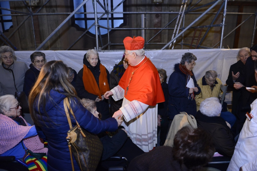 Spazio quest’anno in ristrutturazione – il 28 novembre ne è stata dichiarata la inagibilità – ma riaperto brevemente proprio per la presenza dell’Arcivescovo, come ricorda il cappellano don Carlo Stucchi portando il benvenuto a nome di degenti e personale. In prima fila siedono Claudio Sileo, solo da ieri nominato commissario del Trivulzio stesso, i rappresentanti della Regione, Cantù, del Comune, Majorino, il vicepresidente della provincia Maerna. Tanti, appunto, gli anziani e i malati che circondano il Cardinale, così come i sacerdoti, i medici, gli infermieri, i volontari, i parenti degli ospiti.
