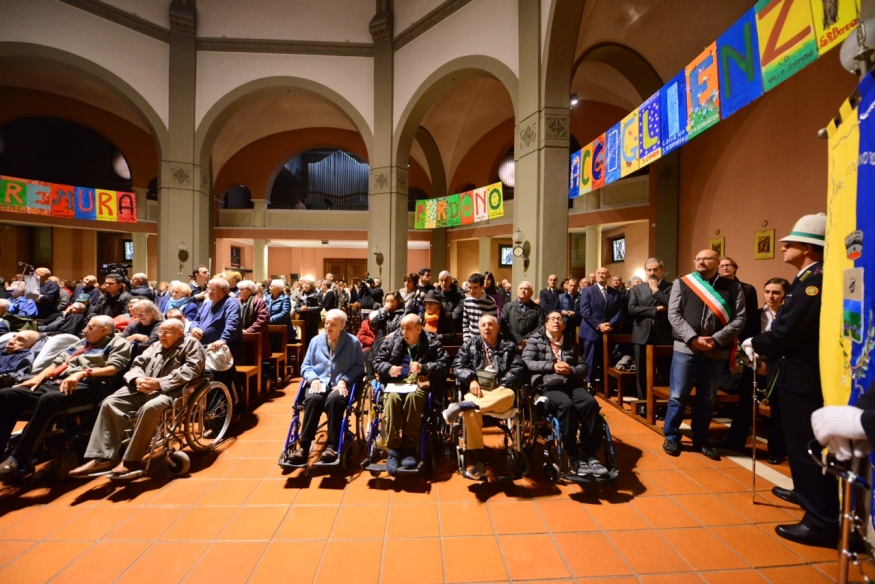 «120 anni sono tanti e questo è un motivo più che sufficiente per ringraziare il Signore di una vita ricca e piena di sfaccettature», dice il presidente, monsignor Vincenzo Barbante, notando l’importanza che ha assunto in questi mesi la Porta Santa Giubilare posta proprio alla “Sacra Famiglia” e oltrepassata da migliaia di fedeli: ben 153 i pellegrinaggi che vi si sono recati. «Espressione di una Chiesa che sperimenta ogni giorno la misericordia annunciando che la fragilità appartiene a tutti e che può rappresentare non chiusura, ma solidarietà. Ci siamo interrogati in questo anno, nelle nostre filiali, proprio sulla vocazione che nasce dalla fragilità, come possibilità di collaborare con Dio al servizio della carità», conclude monsignor Barbante, cui sono accanto, tra gli altri sacerdoti, di cui alcuni anche degenti, il prevosto di Cesano Boscone, don Caldera e il superiore della Casa dei Francescani Cappuccini interna alla della struttura.