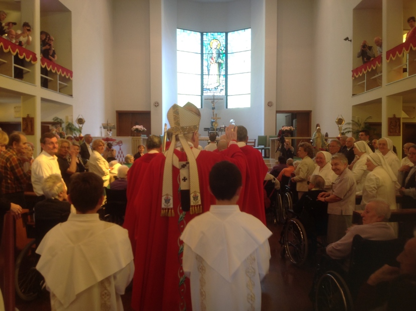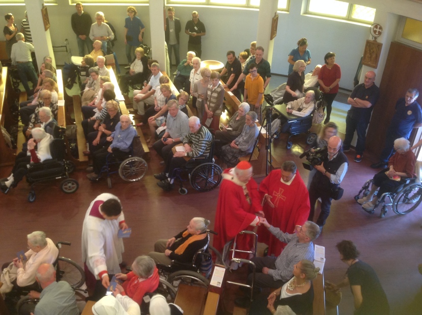 Presenti il sindaco di Lecco, Virginio Brivio, Mario Romano Negri, presidente della Fondazione Comunitaria del Lecchese, benefattrice dell’Iram, la vicepresidente Rosaria Bonacina e altre autorità, il Cardinale presiede, poco dopo, l’Eucaristia vigiliare, concelebrata dal Prevosto di Lecco, monsignor Franco Cecchin, dal responsabile del Servizio per la Pastorale della Salute, don Paolo Fontana, dal Cappellano, don Gianni Grulli, da quello del vicino ospedale “Manzoni”, don Antonio Della Bella, dal parroco di Germanedo e dall’unico sacerdote ospite della struttura.