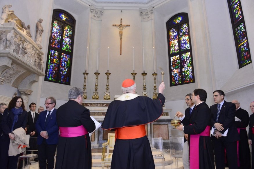 Sì, perché la chiesa, poco conosciuta – mentre è notissimo il campanile di Francesco Pecorari (l’architetto progettista) datato 1336 – in qualche modo è anche un simbolo di antiche tradizioni e di nuove collaborazioni, come quelle di oggi tra il Comune di Milano, cui appartiene il Palazzo e la Chiesa ambrosiana. Tanto che, come dice l’Arciprete della Cattedrale, monsignor Borgonovo – alla Veneranda Fabbrica si deve il restauro – si è pensato di inserire San Gottardo nel percorso museale del Grande Museo del Duomo, ma salvaguardando la possibilità che venga, talvolta, celebrata qui l’Eucaristia. E il valore di questo restauro, che parla di cultura, viene sottolineato anche dal cardinale Scola che benedice la chiesa, stata per tanti anni Rettoria e area di privilegiato dialogo e amicizia tra le fedi. «Un elemento pacificatore», insomma, di cui si ha, oggi, più che mai «bisogno», un luogo «in cui il culto si trasformi in dato culturale e che possa rappresentare, per i visitatori, uno sguardo più intero. Infatti – osserva l’Arcivescovo – Milano sta cambiando volto anche dal punto di vista artistico, come indicano le tante iniziative di arte che avremo modo di scoprire con Expo».